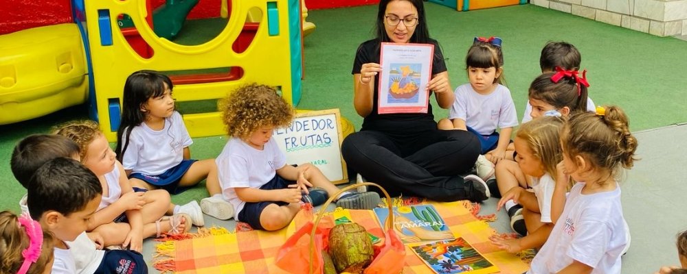 As crianças do Maternal III tiveram a oportunidade de vivenciar uma tarde especial! A professora Laís uniu literatura, arte e alimentação saudável para proporcionar às crianças um delicioso Piquenique Literário no parquinho da escola.