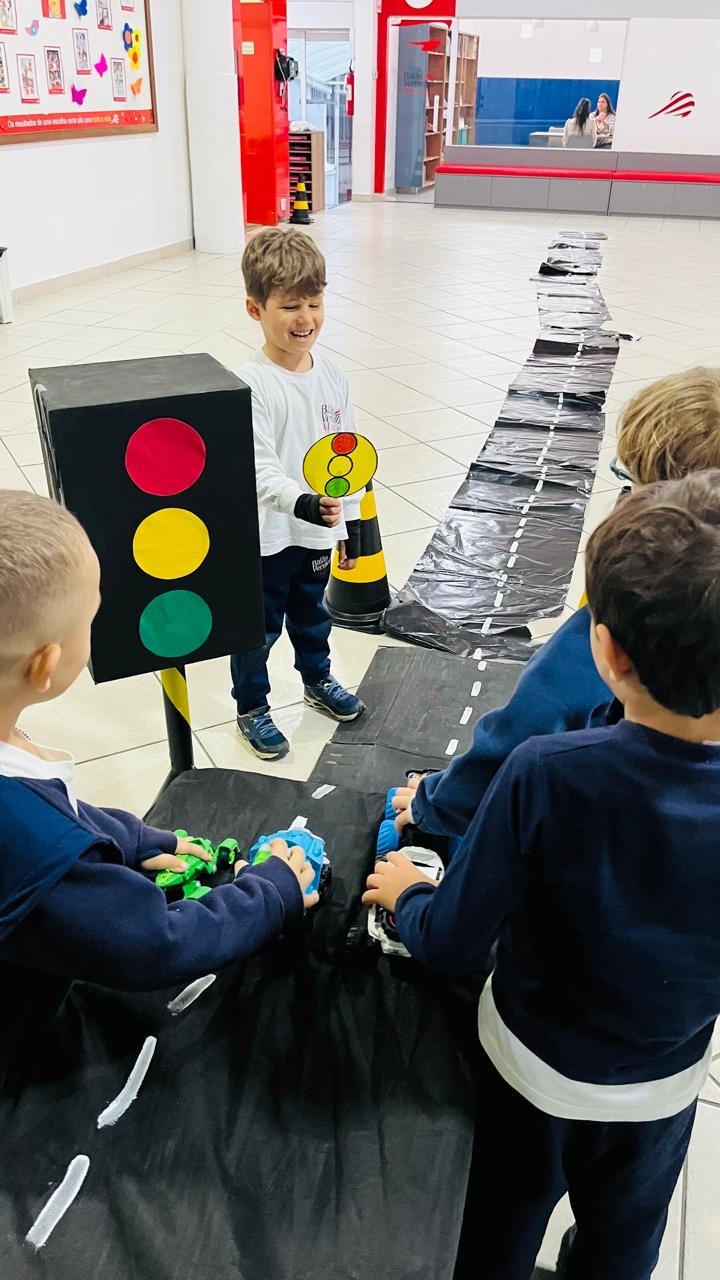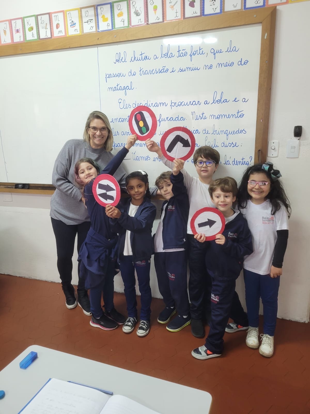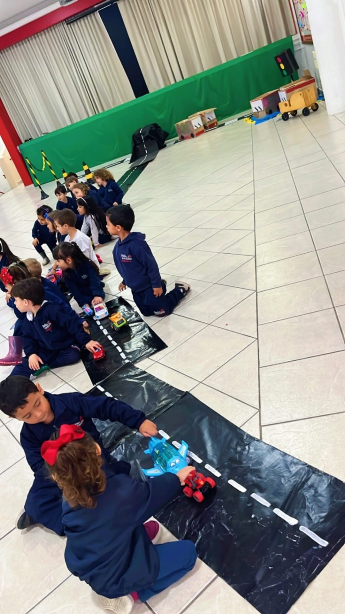 O projeto “Viva o Trânsito”, desenvolvido pela Educação Infantil e pela turma do 1º Ano do Ensino Fundamental, proporcionou às crianças a oportunidade de vivenciar, de maneira concreta, lúdica e criativa, diferentes aspectos do trânsito. Por meio de experiências significativas, elas exploraram regras, símbolos e funções, ampliando sua compreensão sobre a importância do respeito, da atenção e da responsabilidade no dia a dia.