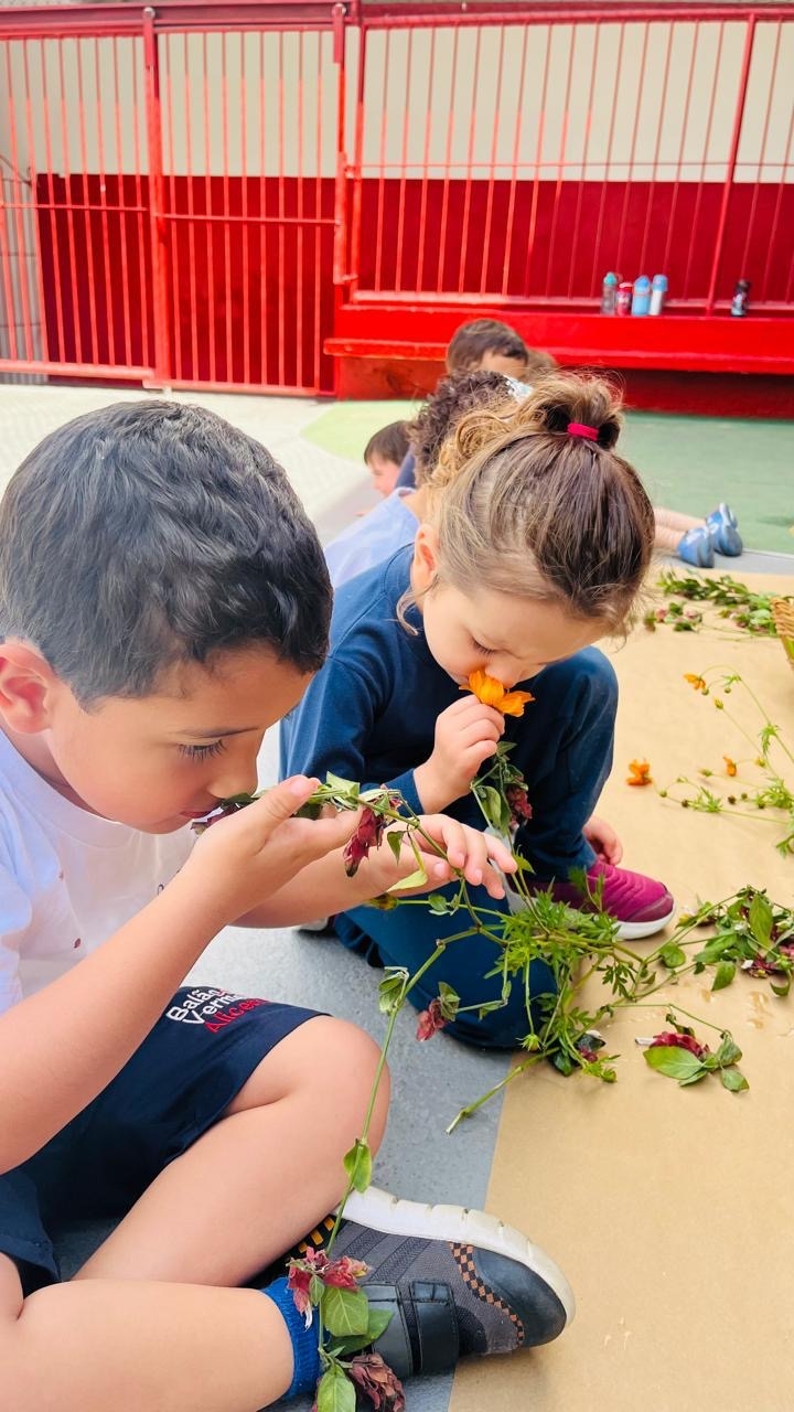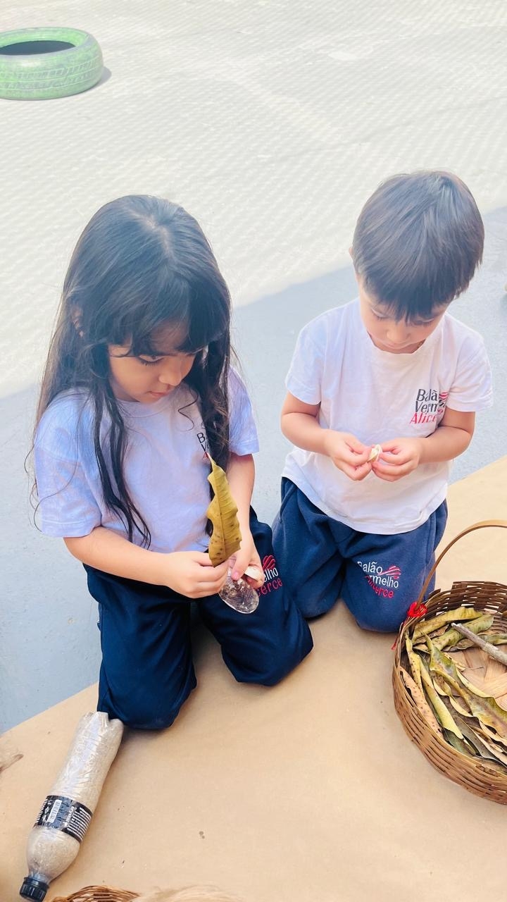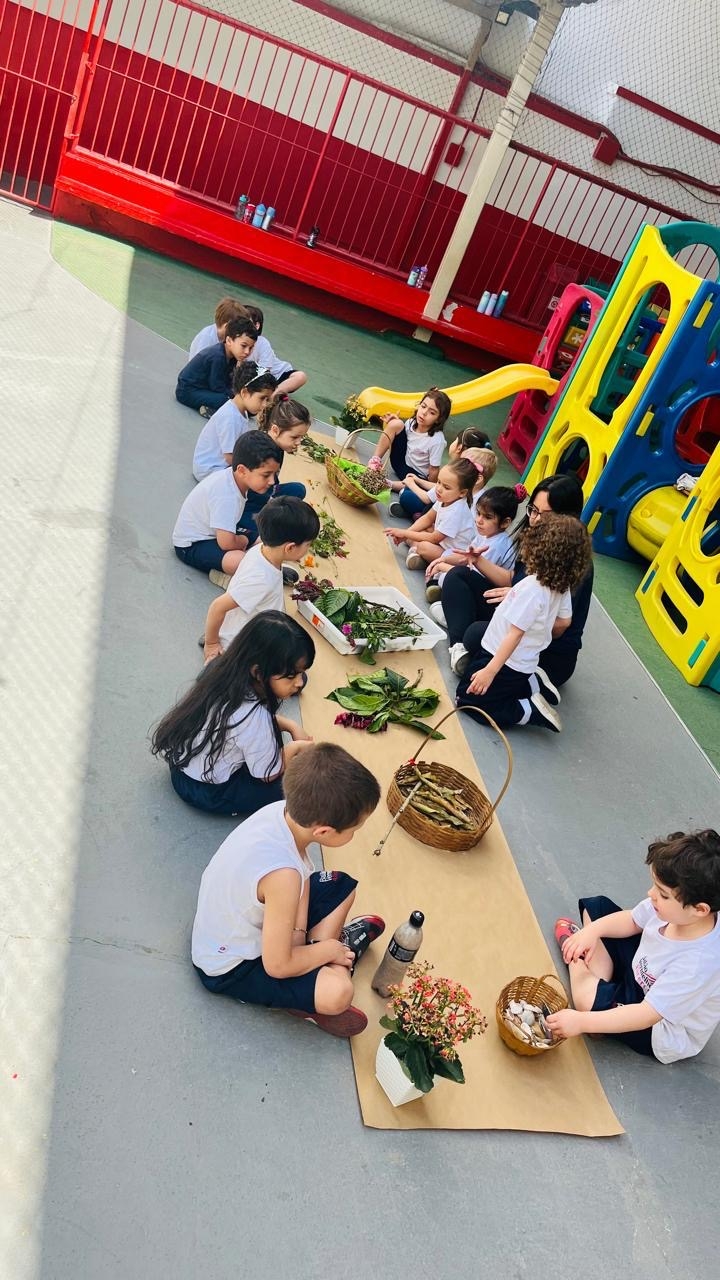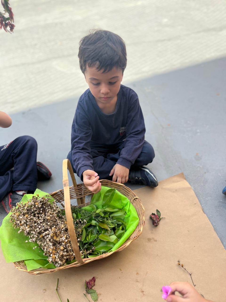 O Maternal 3 participou de uma conversa e de uma vivência especial com os elementos da natureza. As crianças tiveram a oportunidade de explorar, sentir as diferentes texturas e perceber os cheiros, ampliando seus sentidos e descobertas em um momento de encantamento e conexão com o ambiente natural.