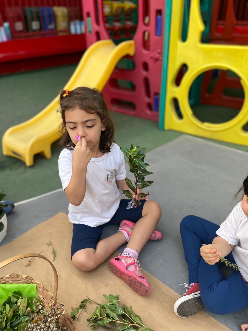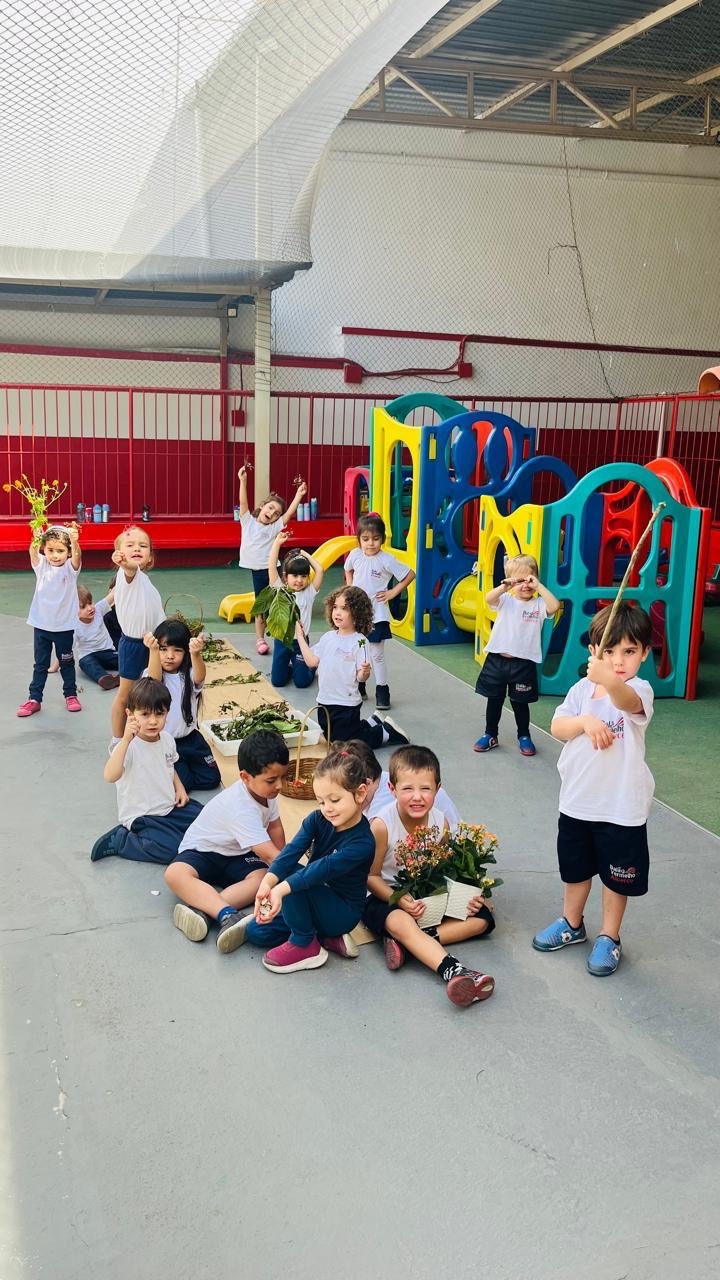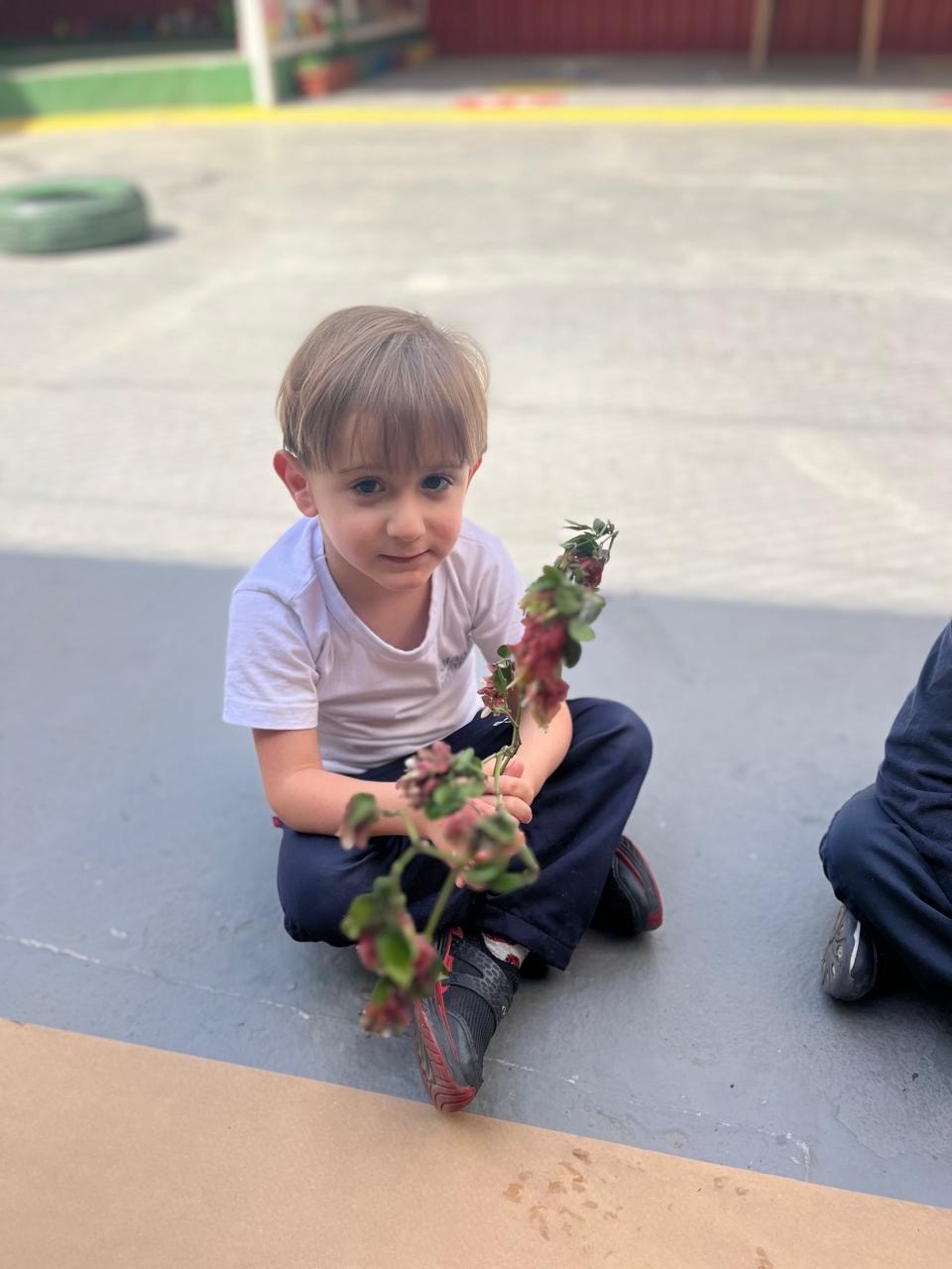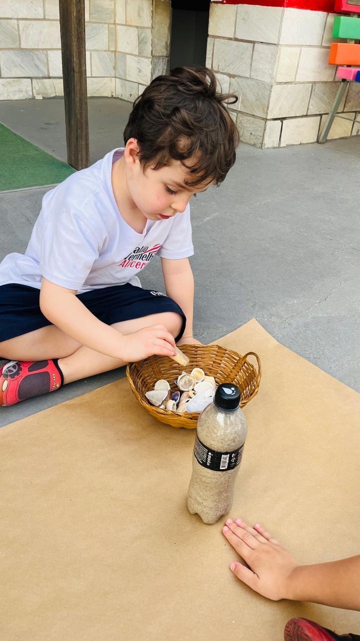 O Maternal 3 participou de uma conversa e de uma vivência especial com os elementos da natureza. As crianças tiveram a oportunidade de explorar, sentir as diferentes texturas e perceber os cheiros, ampliando seus sentidos e descobertas em um momento de encantamento e conexão com o ambiente natural.