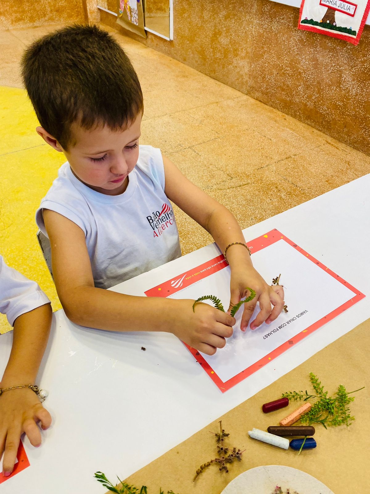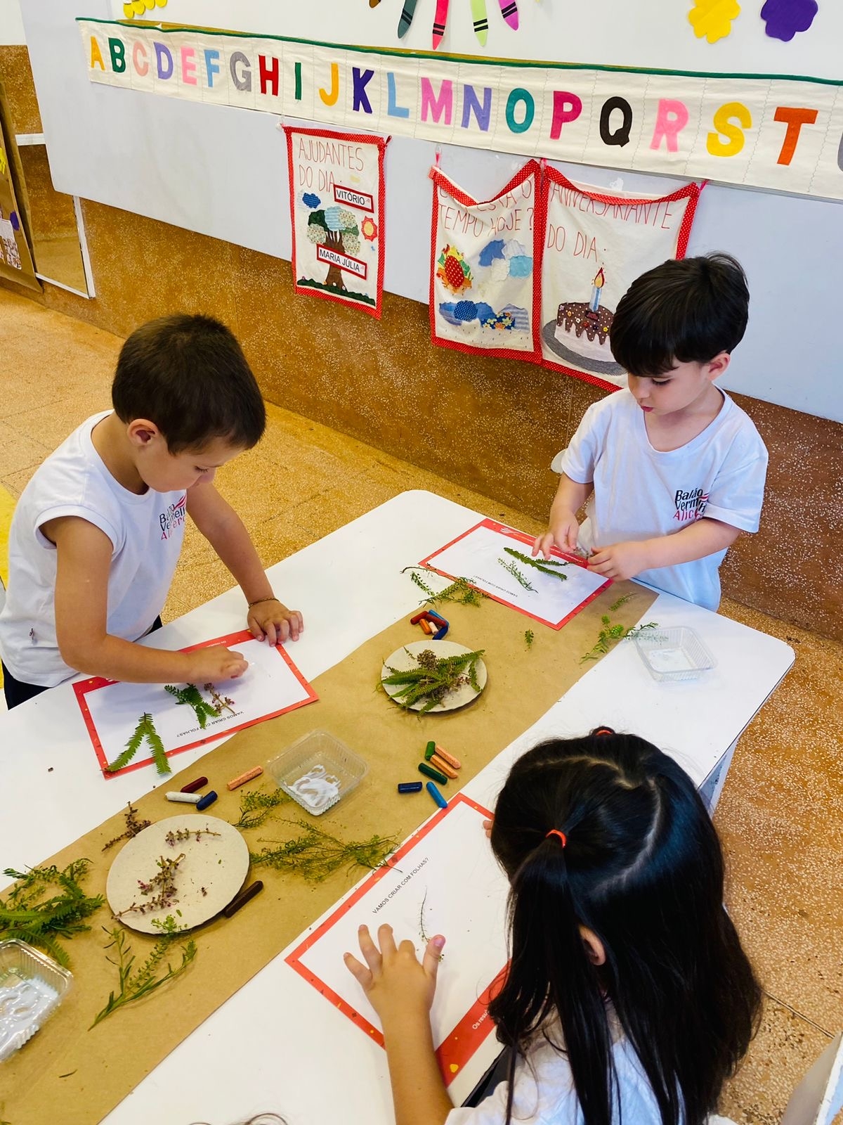 As crianças do Maternal III vivenciaram uma prática pedagógica repleta de imaginação e criatividade. Inspiradas pela natureza, observaram diferentes formas, cores e texturas de folhas, transformando-as em lindas produções artísticas. A vivência possibilitou às crianças explorar materiais naturais, expressar sentimentos e desenvolver o olhar sensível para a beleza que existe ao seu redor.