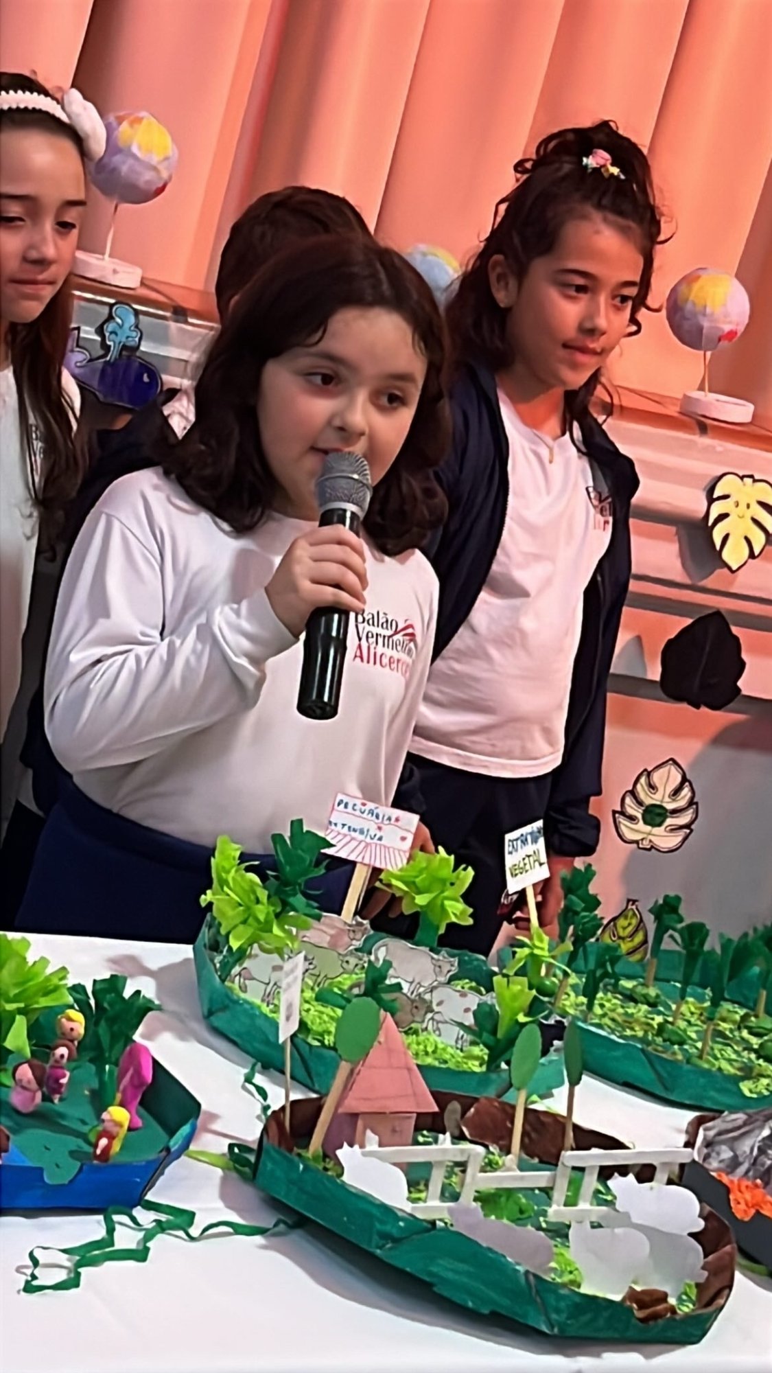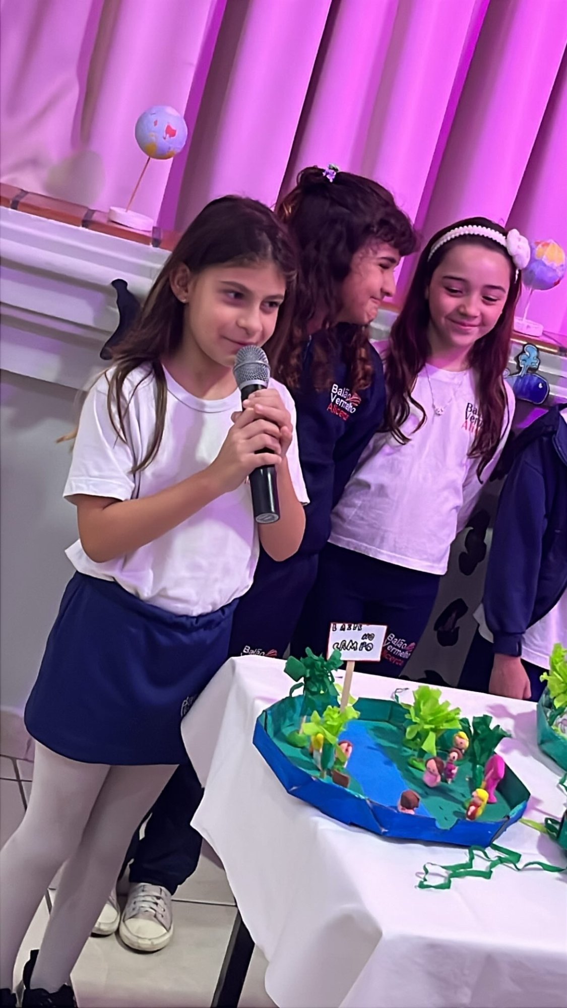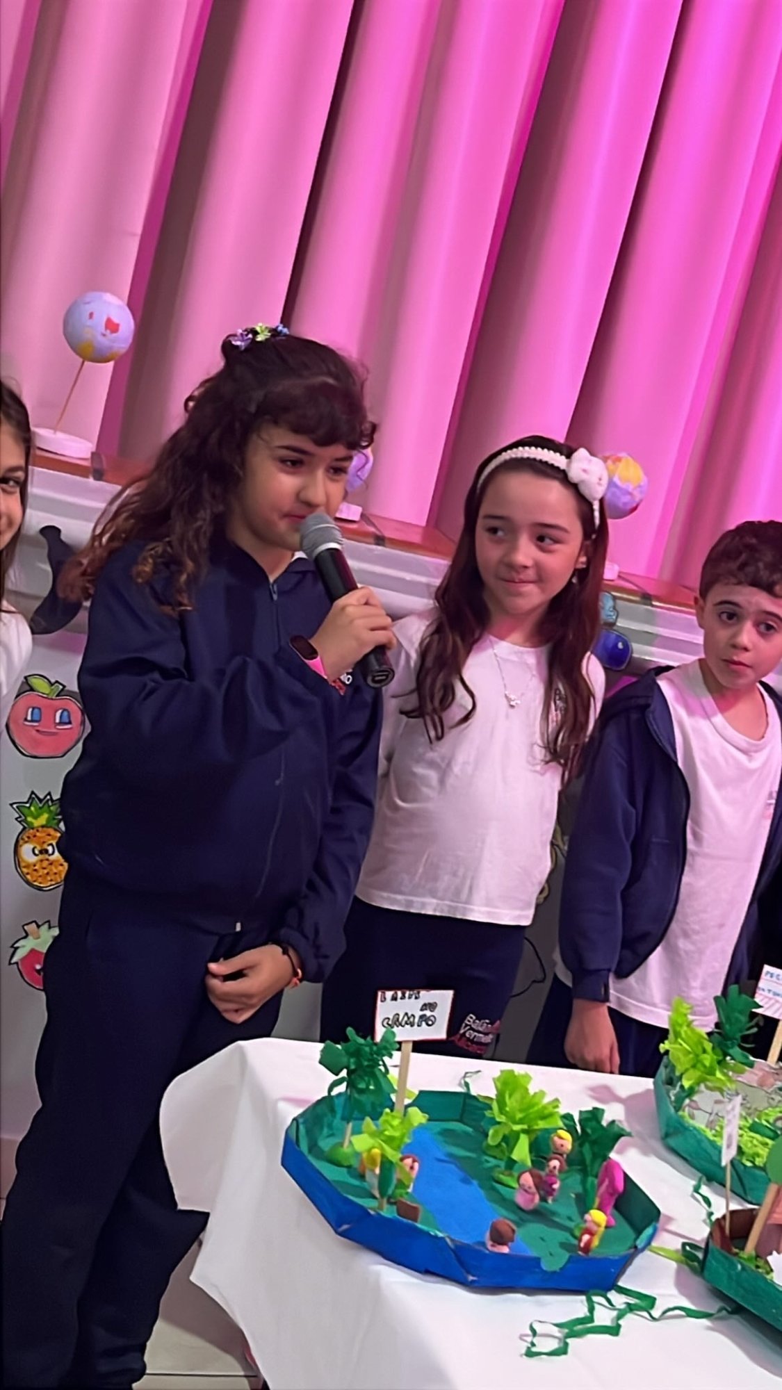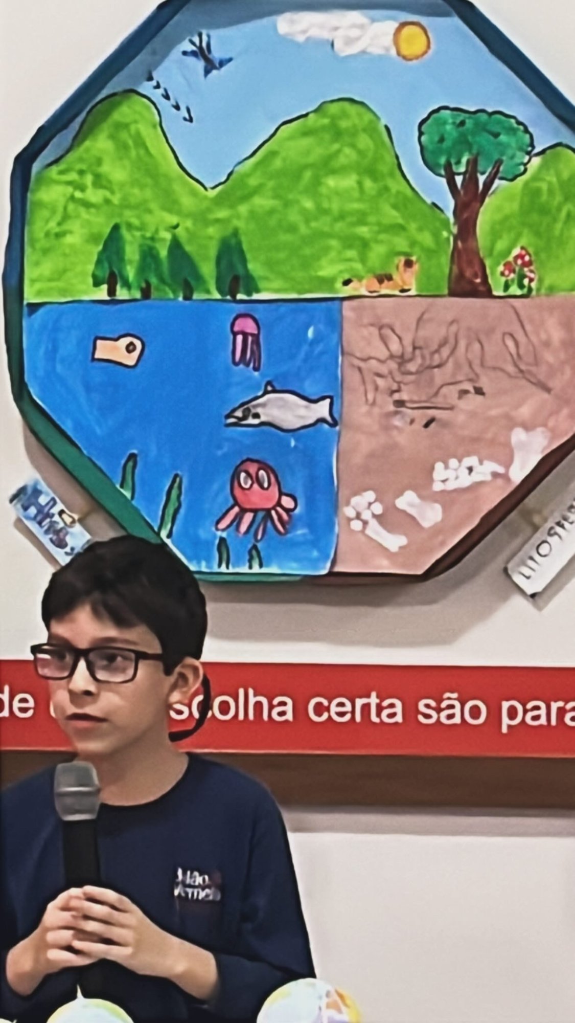 Os alunos do 3º ano apresentaram um trabalho sobre o Planeta Terra, desenvolvido de forma interdisciplinar. O projeto teve como tema principal a disciplina de Ciências, mas também integrou conteúdos de História, abordando o trabalho e o lazer no campo, e de Geografia, explorando aspectos do espaço urbano. Professora Elisângela Azevedo.