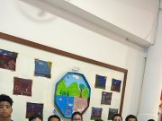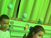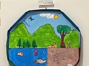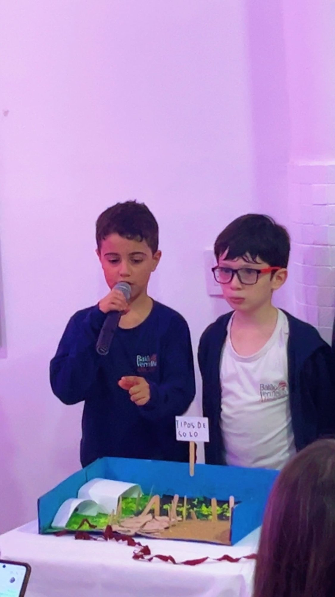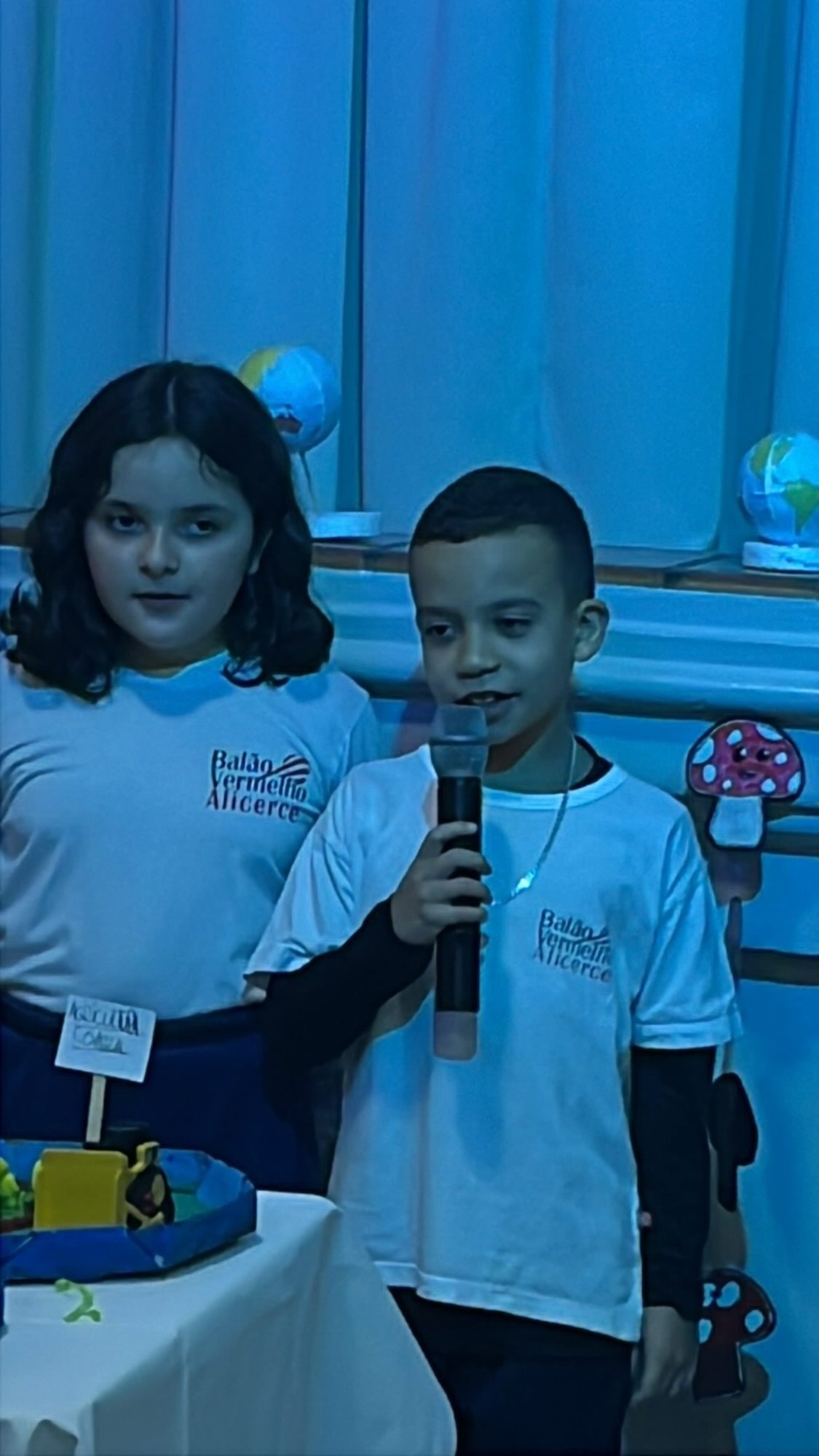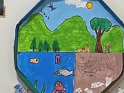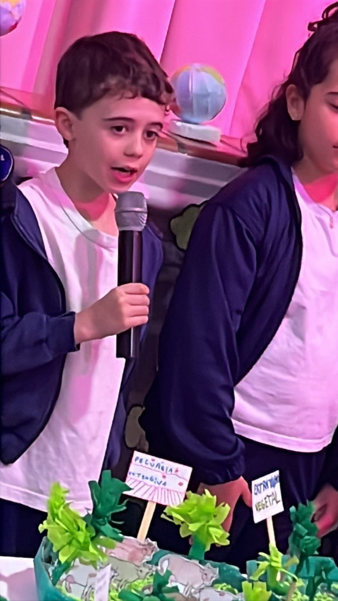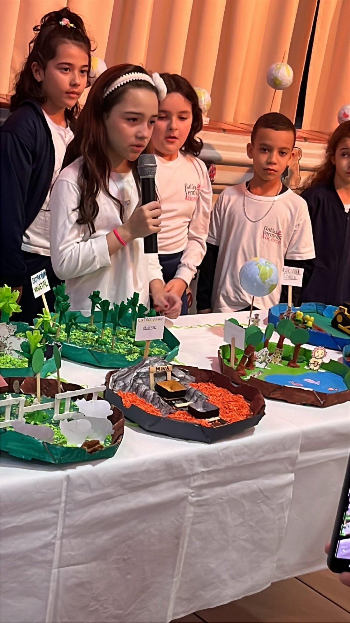 Os alunos do 3º ano apresentaram um trabalho sobre o Planeta Terra, desenvolvido de forma interdisciplinar. O projeto teve como tema principal a disciplina de Ciências, mas também integrou conteúdos de História, abordando o trabalho e o lazer no campo, e de Geografia, explorando aspectos do espaço urbano. Professora Elisângela Azevedo.