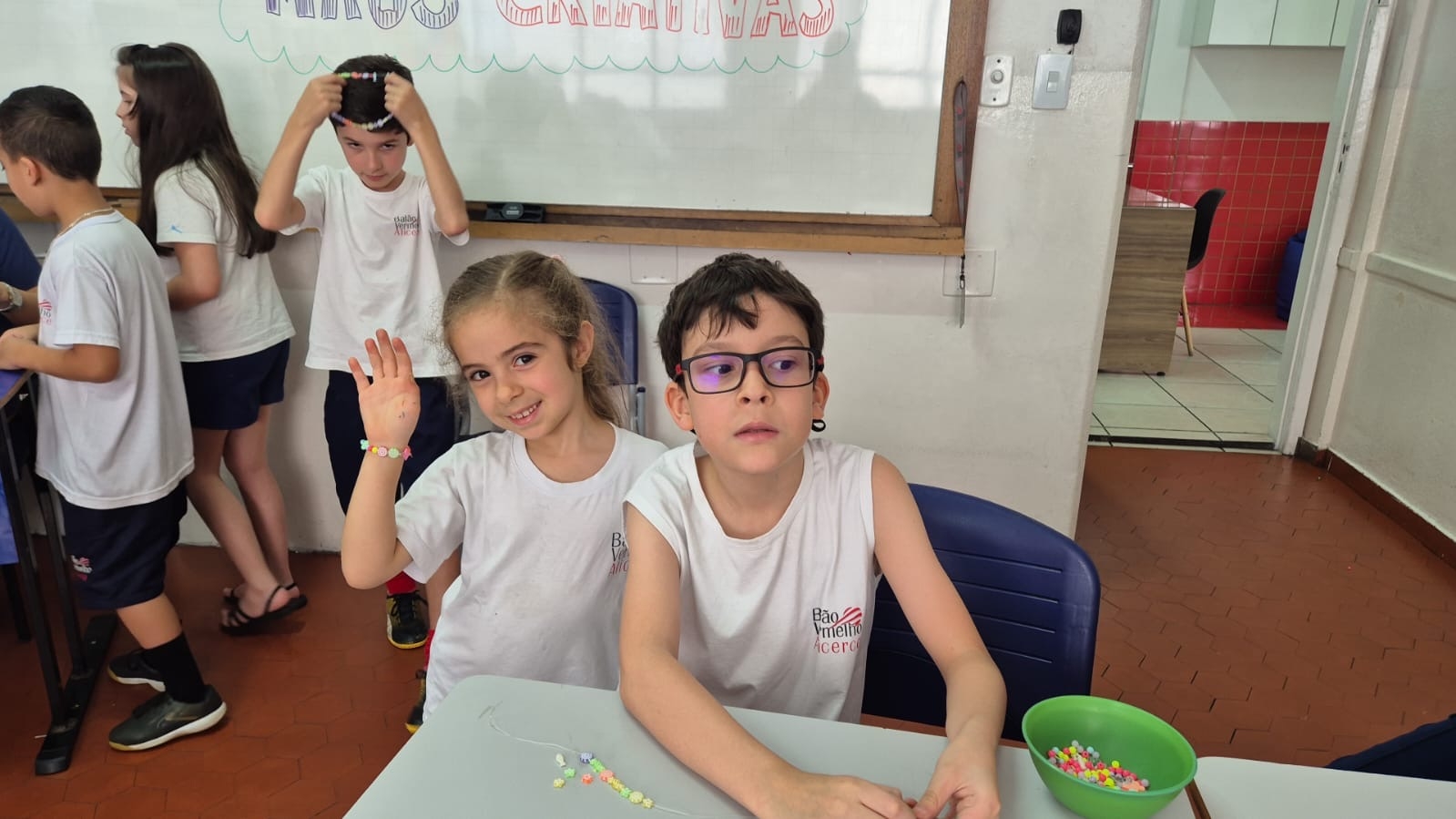 Os alunos do Ensino Fundamental I viveram uma manhã repleta de descobertas, criações e muita diversão! Através das oficinas de música, biscuit, confecção de máscaras e pulseiras, as crianças exploraram diferentes formas de expressão, exercitando a criatividade, a coordenação motora e o trabalho em grupo. Foi um momento rico em aprendizagens, trocas e alegria, que valorizou o protagonismo infantil e o prazer de aprender de forma lúdica.