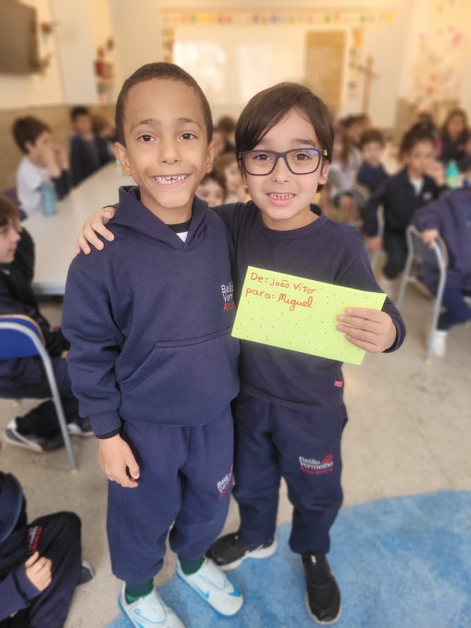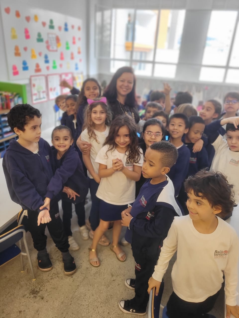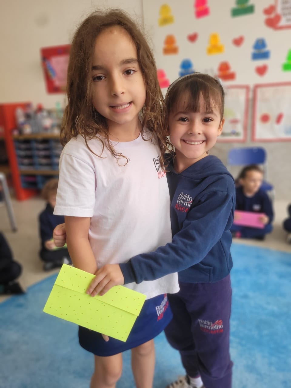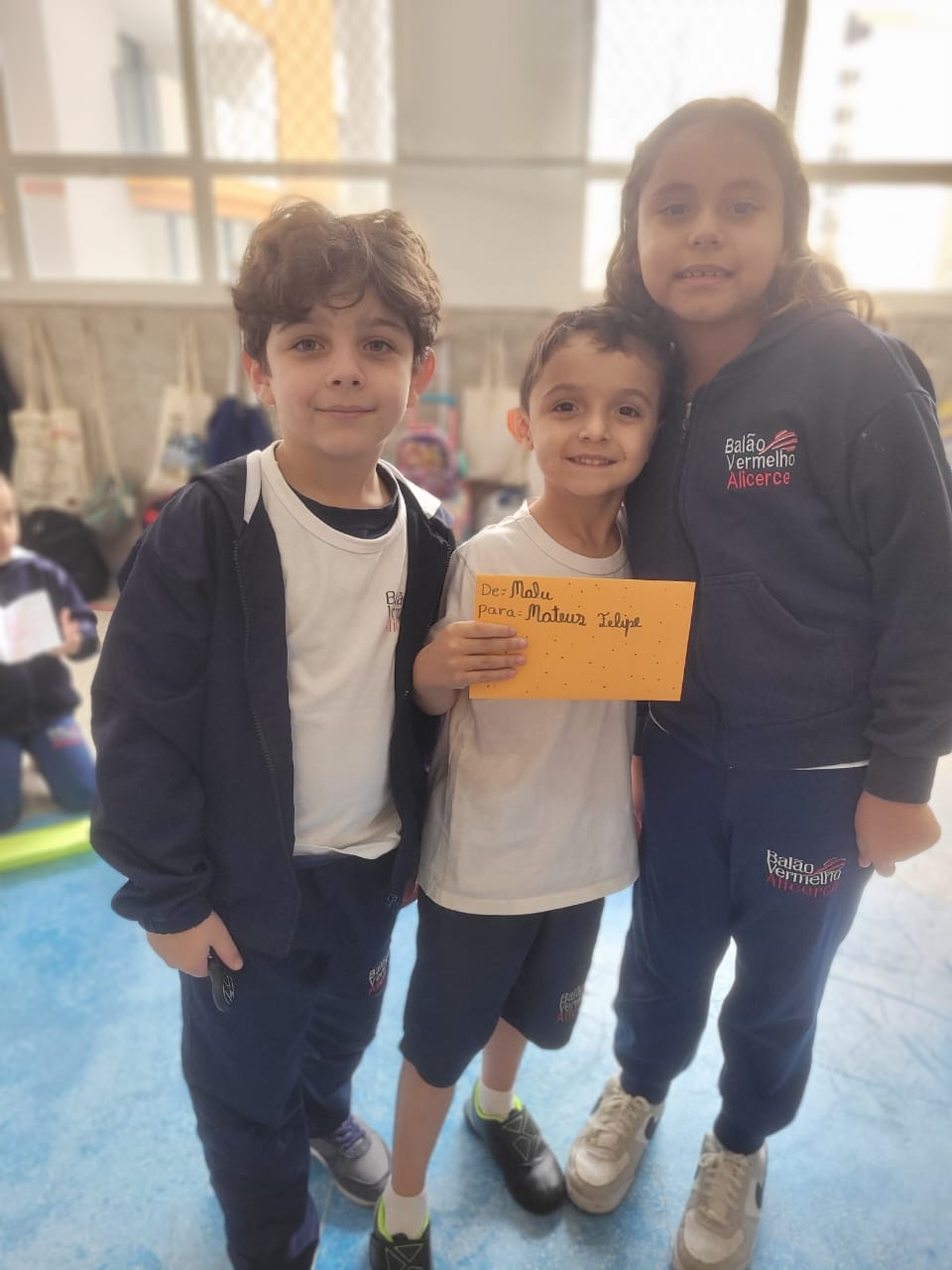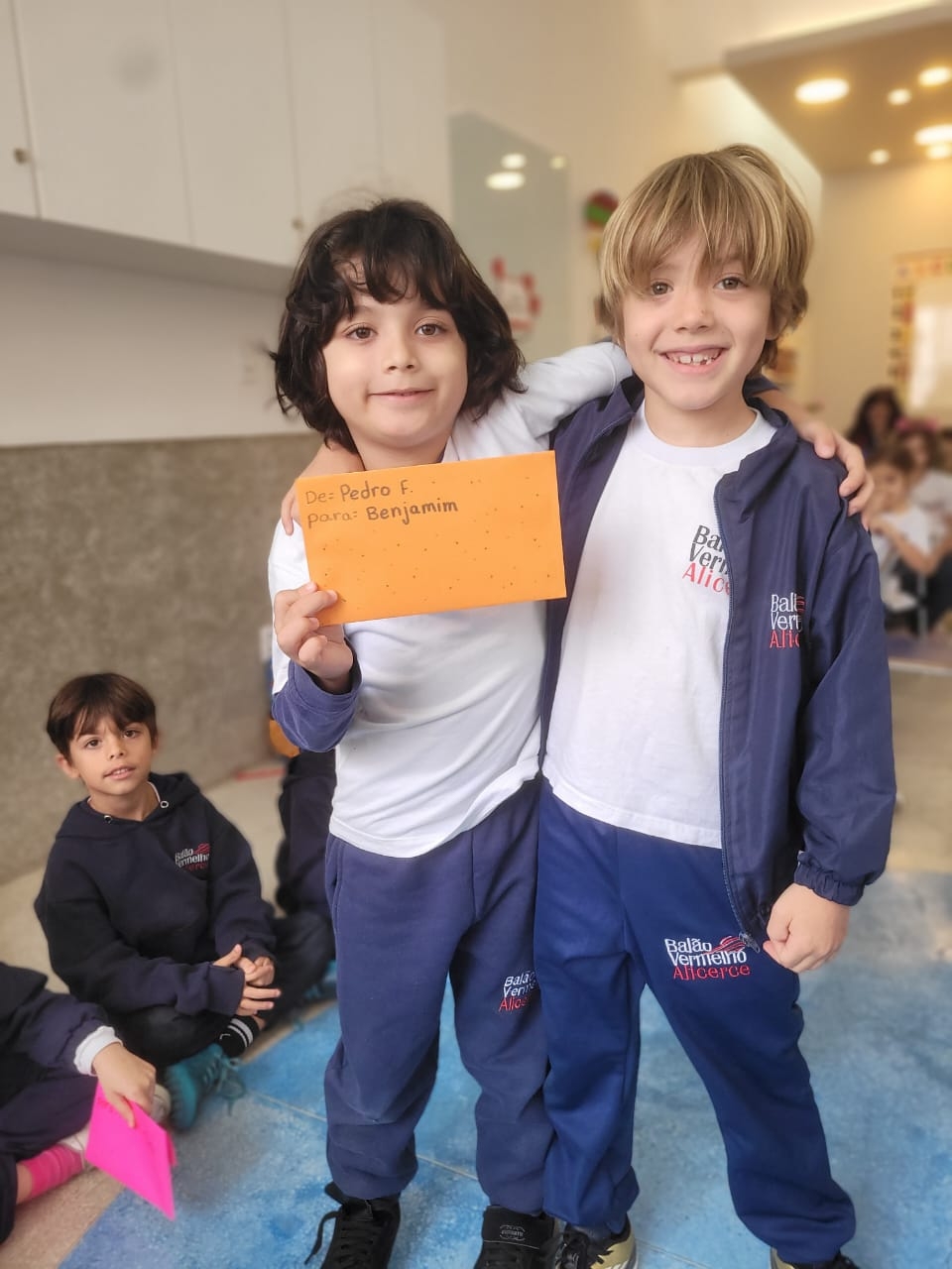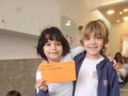 As crianças do Segundo Período receberam, com alegria, a visita da professora Júlia e dos alunos do Primeiro Ano. Durante o encontro, foram presenteadas com cartinhas carinhosas, nas quais receberam um convite especial para visitar a turma do Primeiro Ano ainda nesta semana.