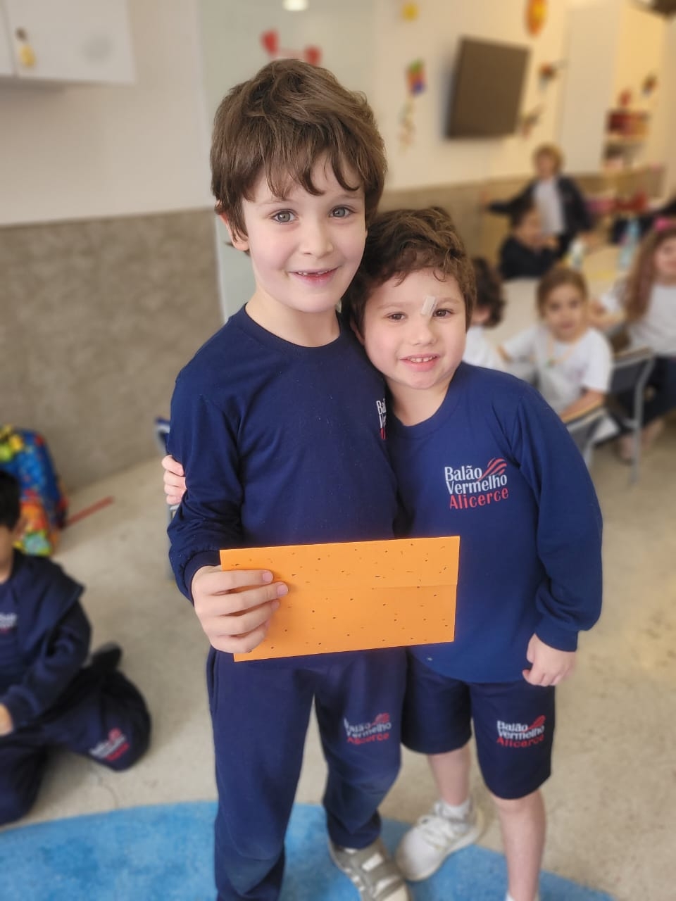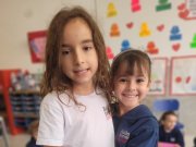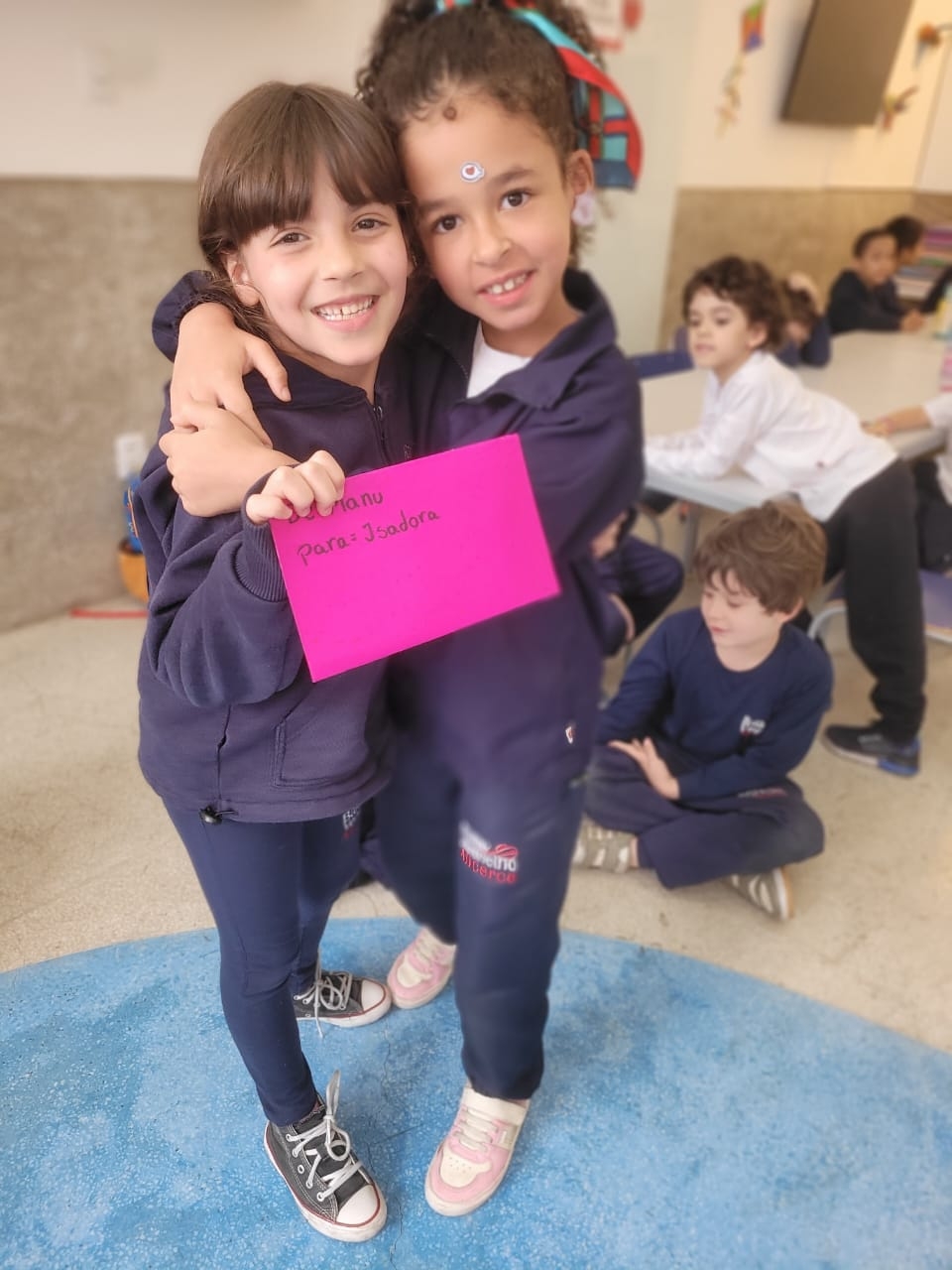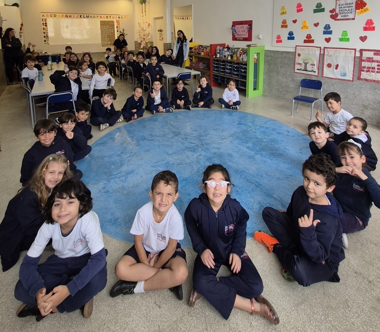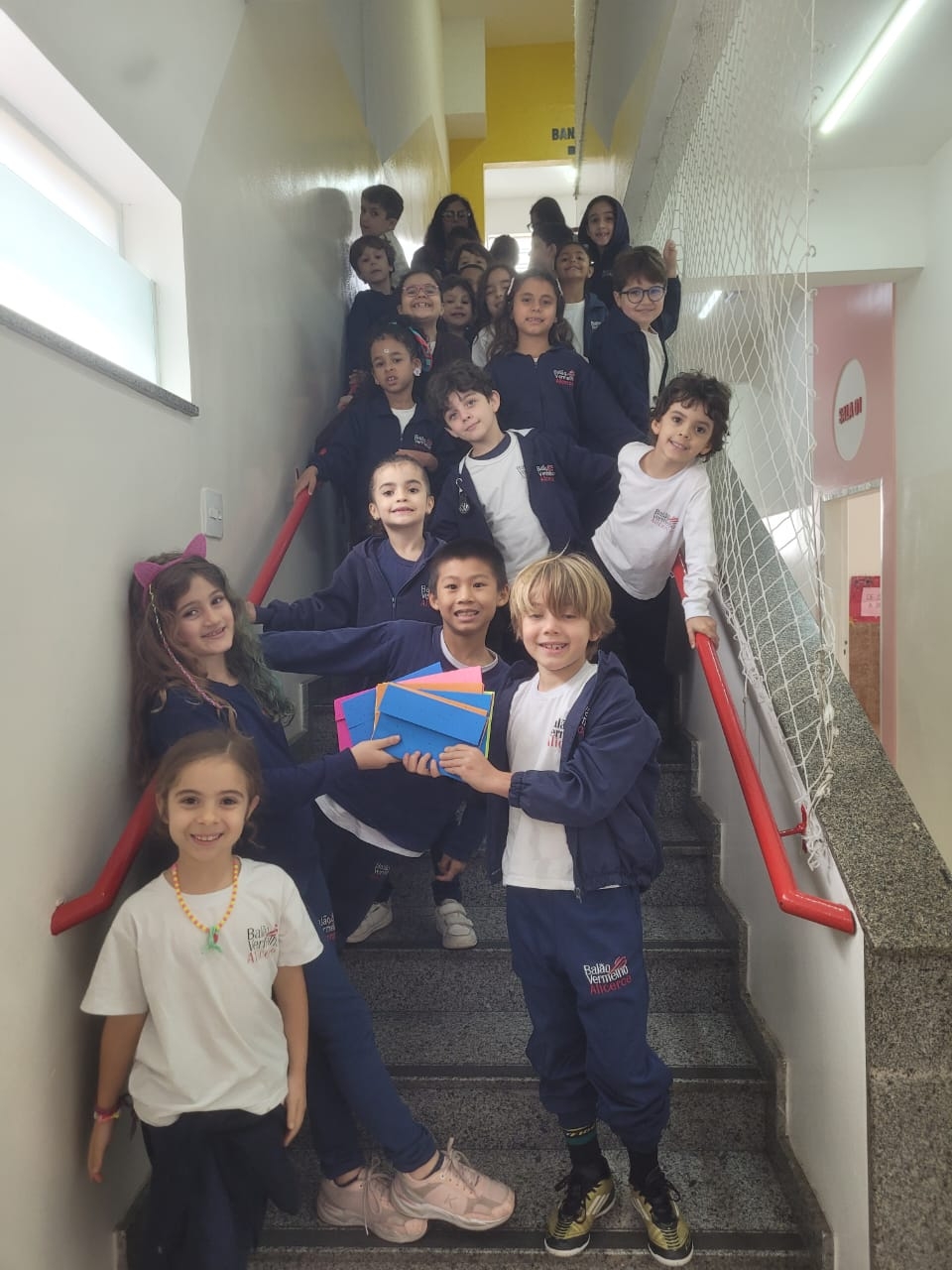 As crianças do Segundo Período receberam, com alegria, a visita da professora Júlia e dos alunos do Primeiro Ano. Durante o encontro, foram presenteadas com cartinhas carinhosas, nas quais receberam um convite especial para visitar a turma do Primeiro Ano ainda nesta semana.