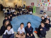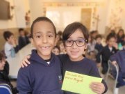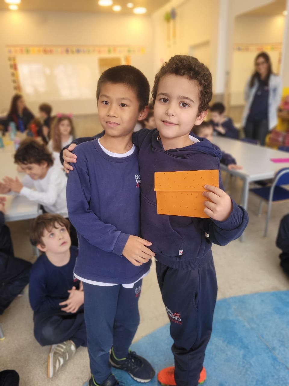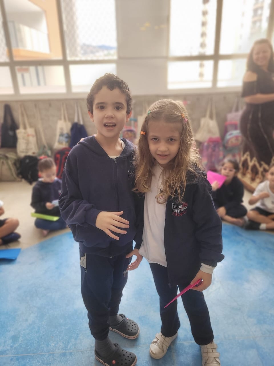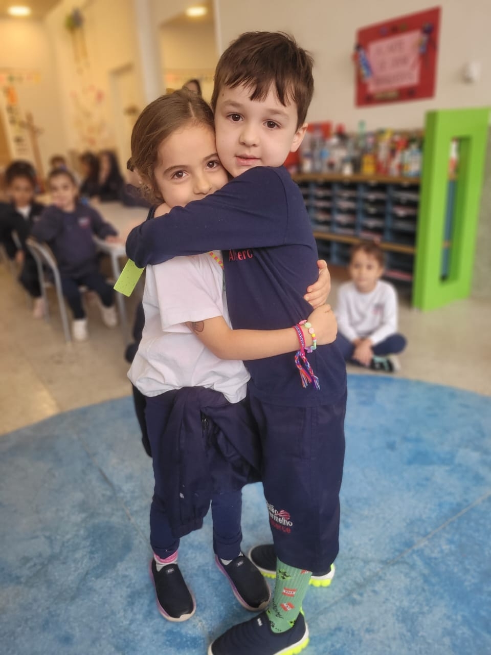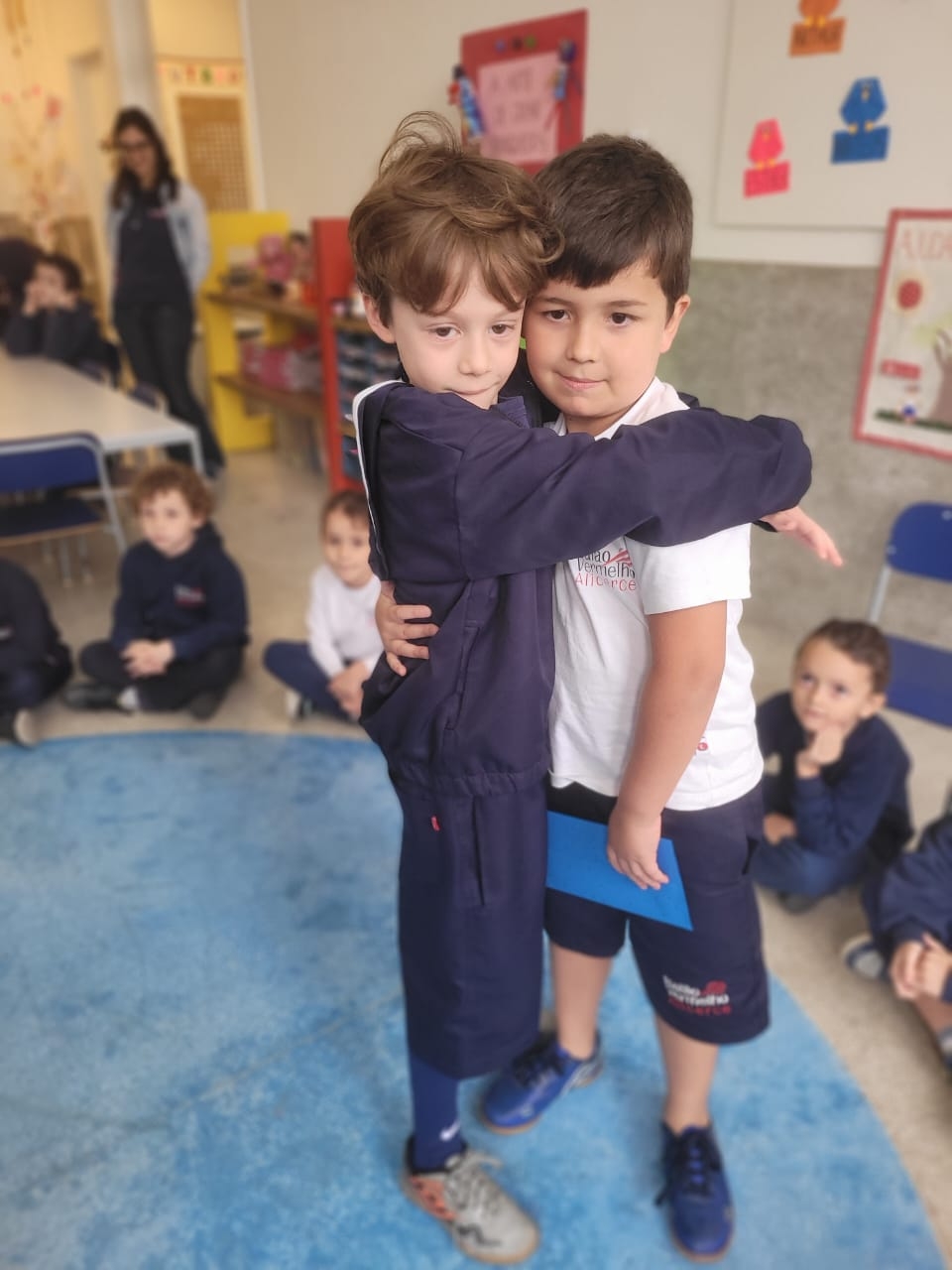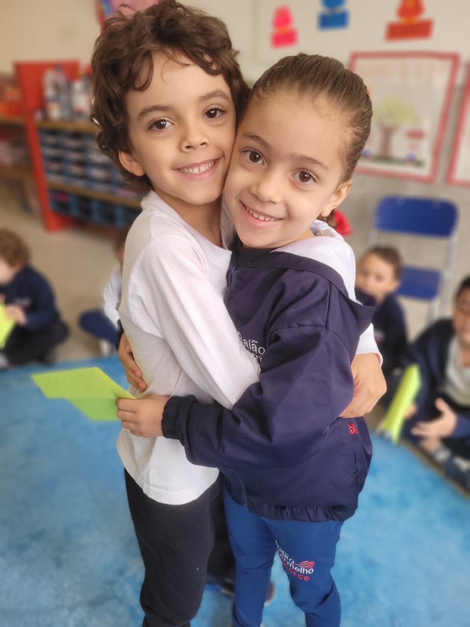 As crianças do Segundo Período receberam, com alegria, a visita da professora Júlia e dos alunos do Primeiro Ano. Durante o encontro, foram presenteadas com cartinhas carinhosas, nas quais receberam um convite especial para visitar a turma do Primeiro Ano ainda nesta semana.