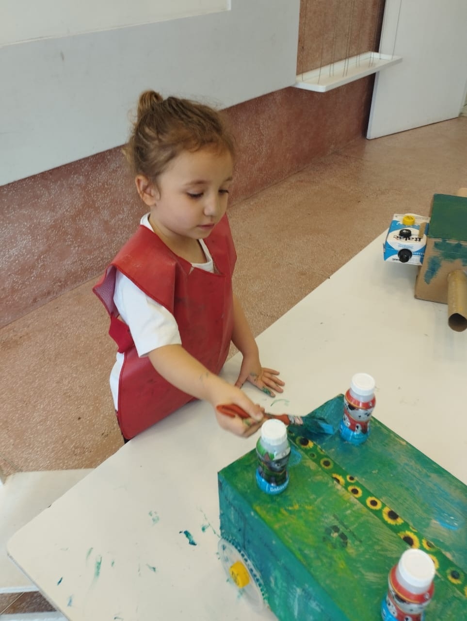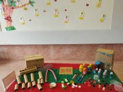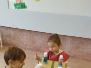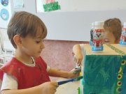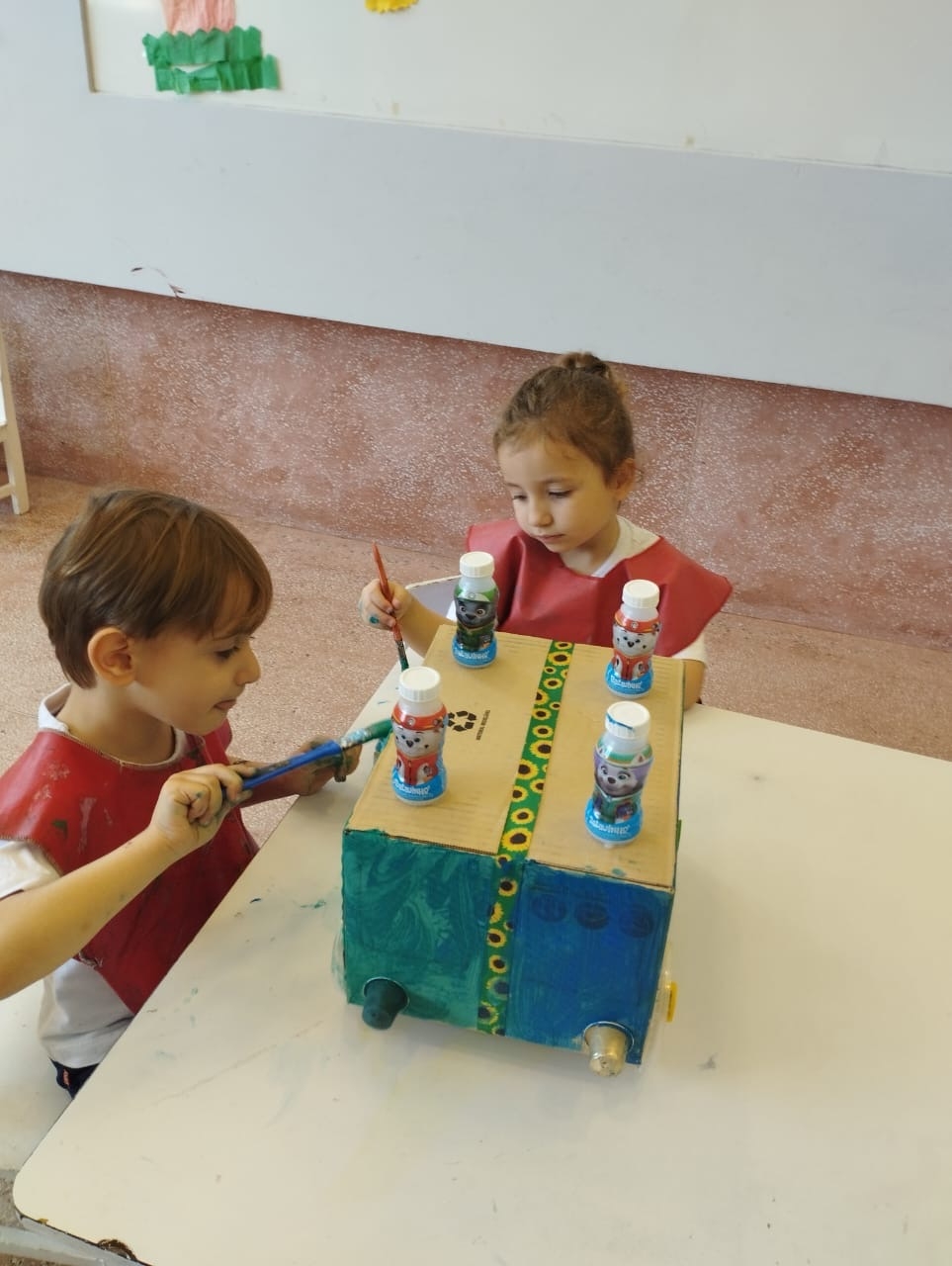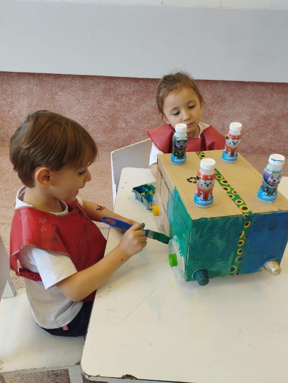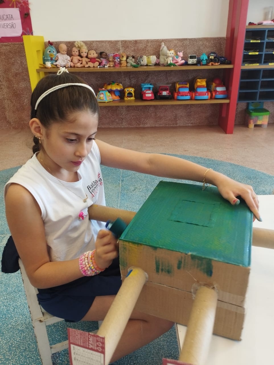 Em seguida, as crianças fizeram brinquedos com sucata, explorando a fantasia, o trabalho em grupo e a consciência ambiental.
