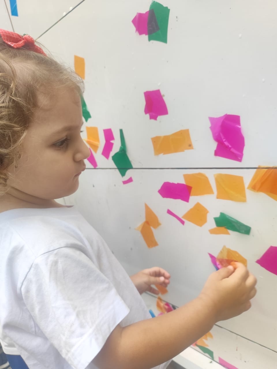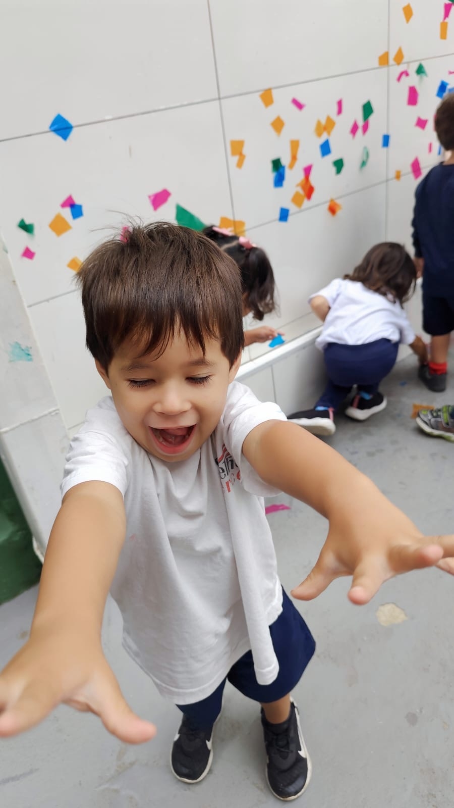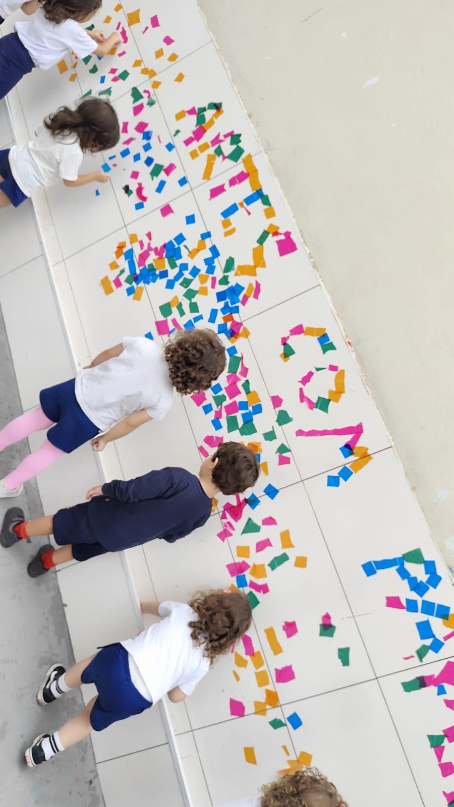 As turmas do Maternal I e do Maternal II viveram uma divertida experiência artística, explorando a arte com papéis picados. Entre cores e texturas, as crianças soltaram a imaginação, criando composições cheias de criatividade. Durante a vivência, além de se divertirem, desenvolveram a coordenação motora fina e o gosto por experimentar novas formas de expressão.