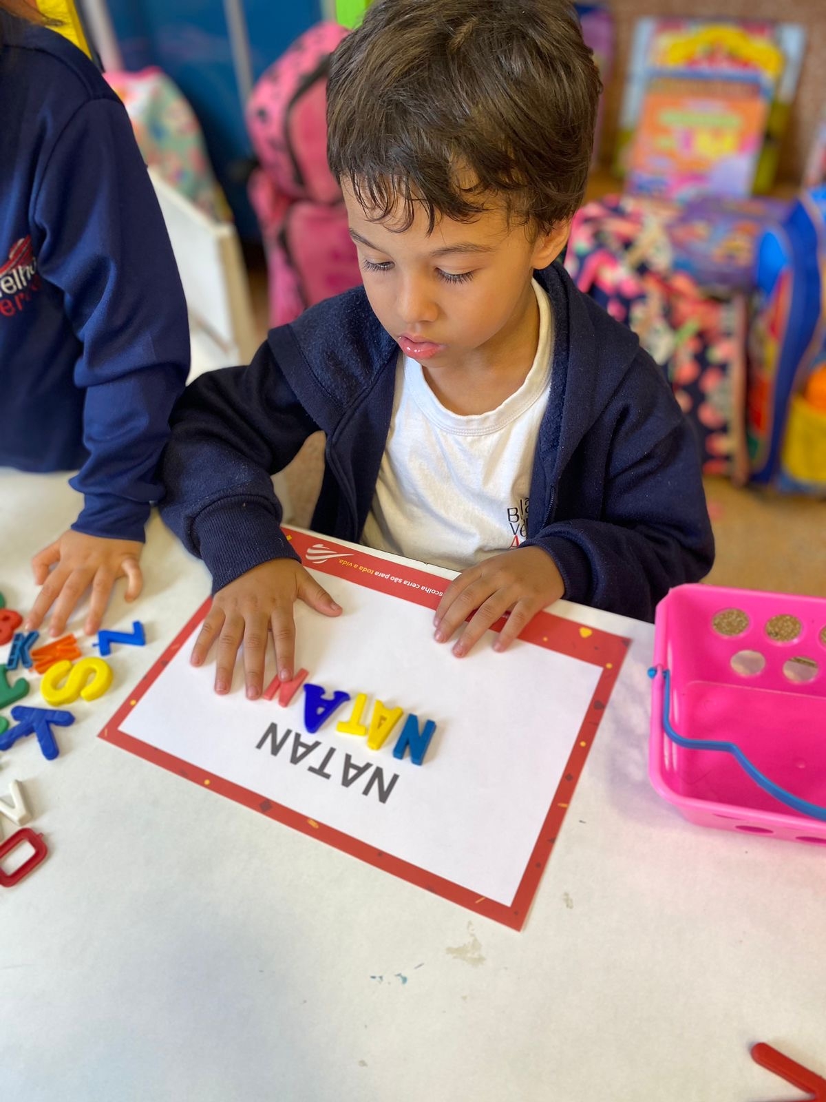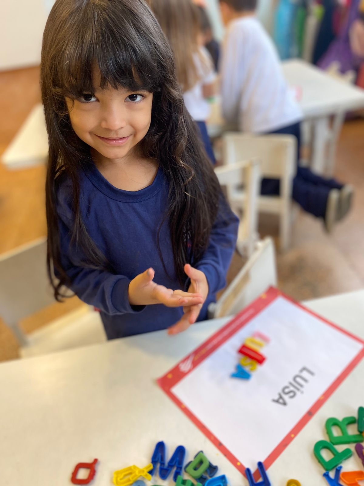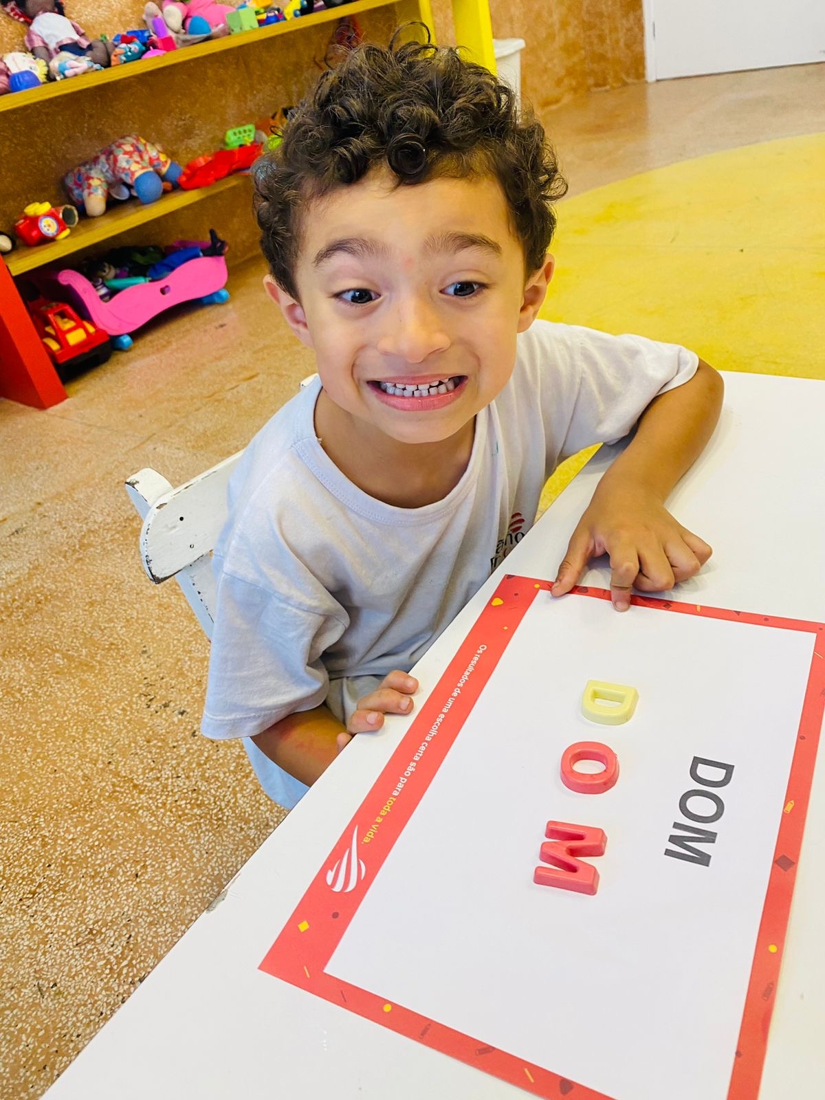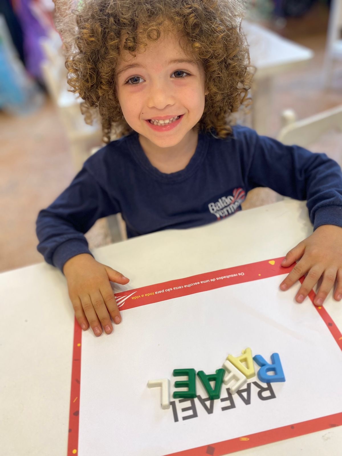 Em um momento de concentração e descobertas, as crianças exploraram as letrinhas móveis para formar e reconhecer seus nomes. Essa proposta, além de divertida, estimula o pensamento simbólico, o reconhecimento das letras e o fortalecimento da identidade, aspectos essenciais no processo de alfabetização inicial.