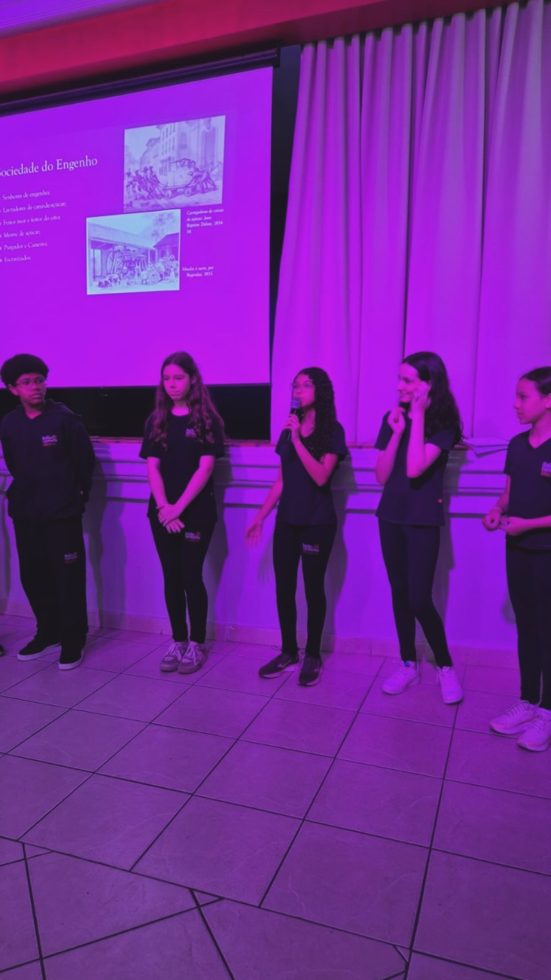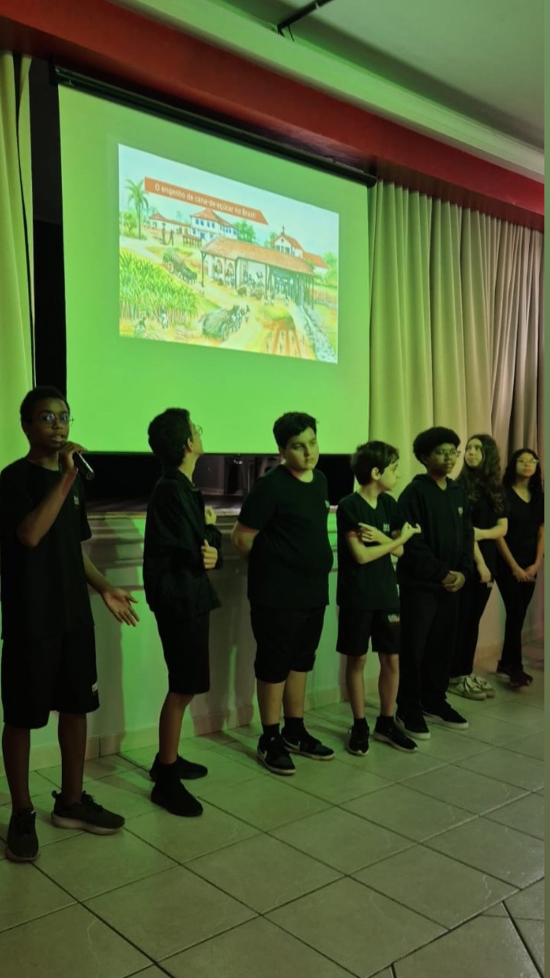 Os alunos do 7º ano realizaram uma apresentação especial, fruto de um projeto interdisciplinar que integrou Geografia e História. Ao longo do processo, os conteúdos dialogaram de forma significativa, possibilitando novas leituras sobre os temas estudados. Nesta manhã, as famílias foram acolhidas para vivenciar trocas riquíssimas e conhecer de perto as descobertas construídas pelos estudantes.