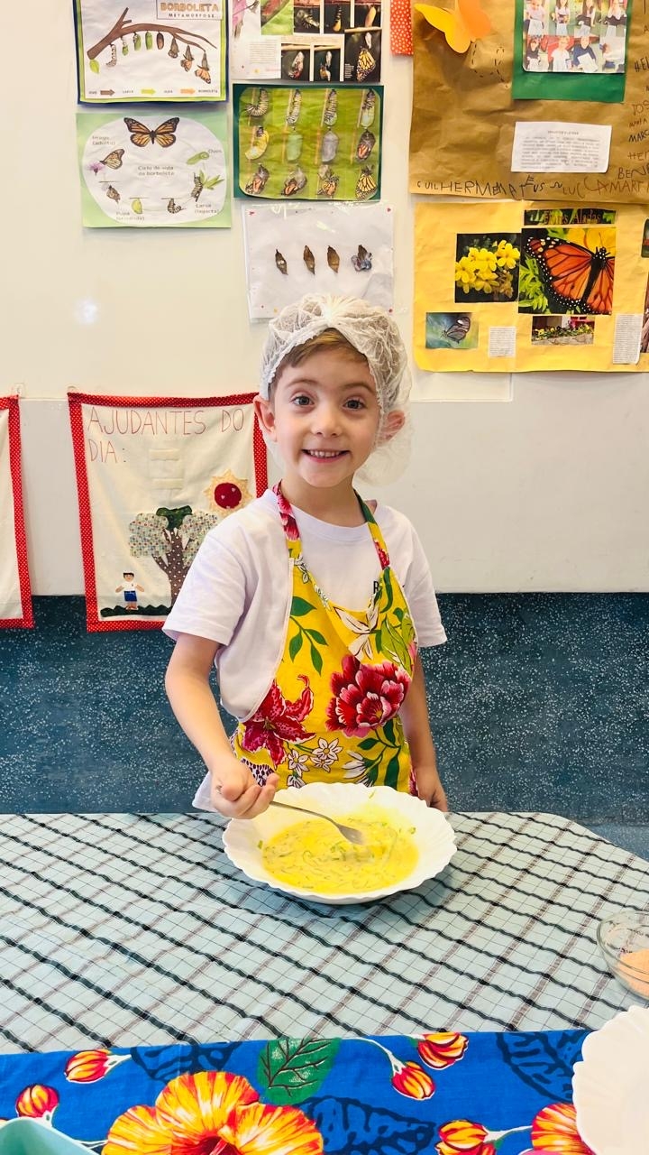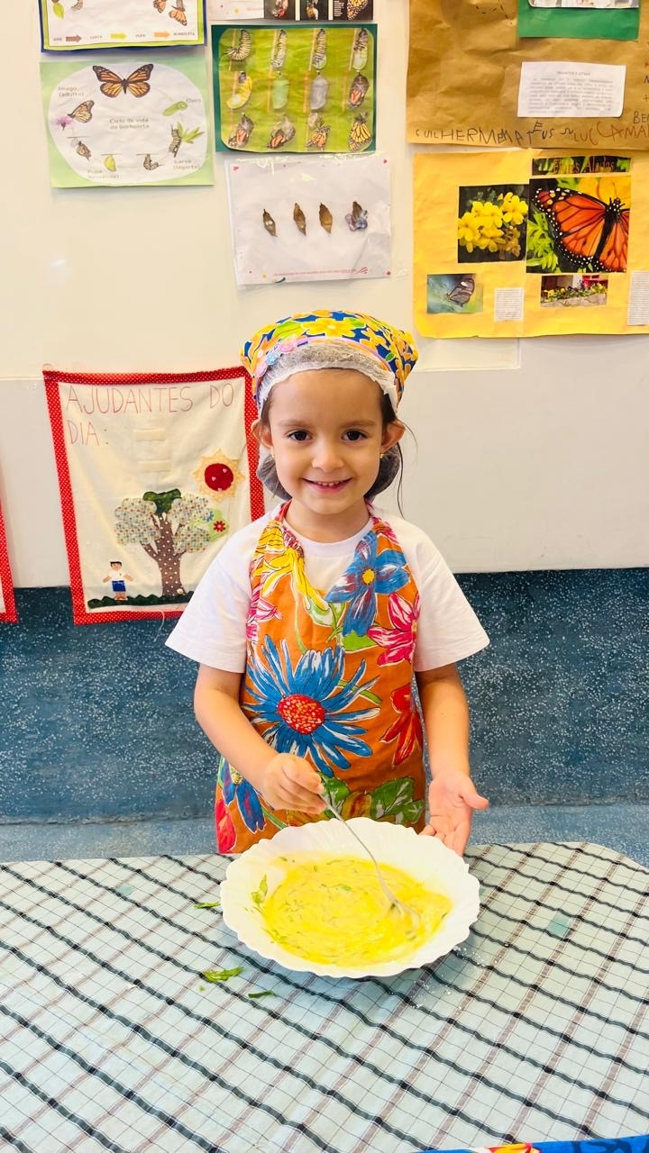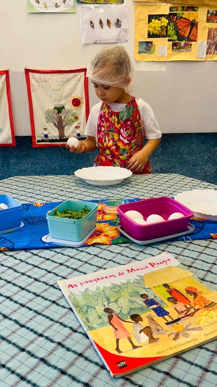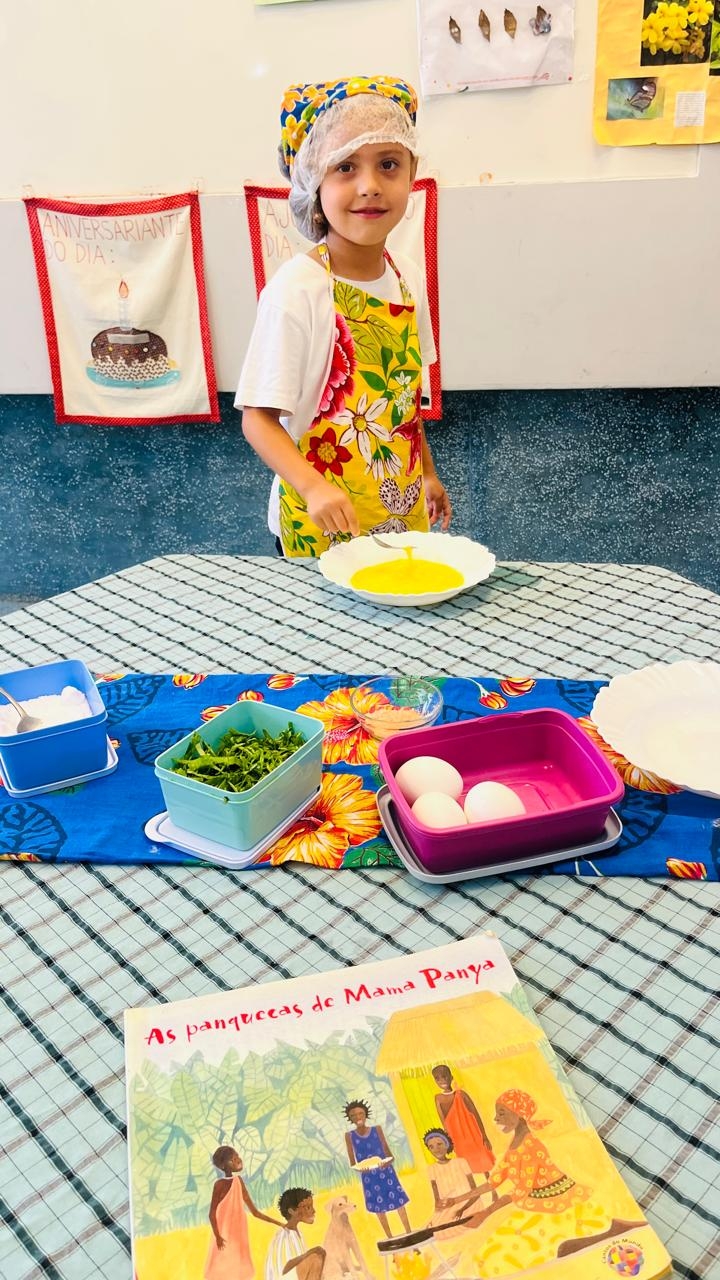 As crianças do Primeiro Período uniram literatura e culinária para explorar aspectos da cultura africana de forma sensível e significativa. A partir de uma história cuidadosamente selecionada, vivenciaram sabores, cores e narrativas que ampliam o repertório cultural, favorecem a curiosidade e fortalecem a compreensão da diversidade presente no mundo. Essa experiência integradora contribui para aprendizagens que dialogam com a imaginação, a convivência e a valorização das diferentes culturas.