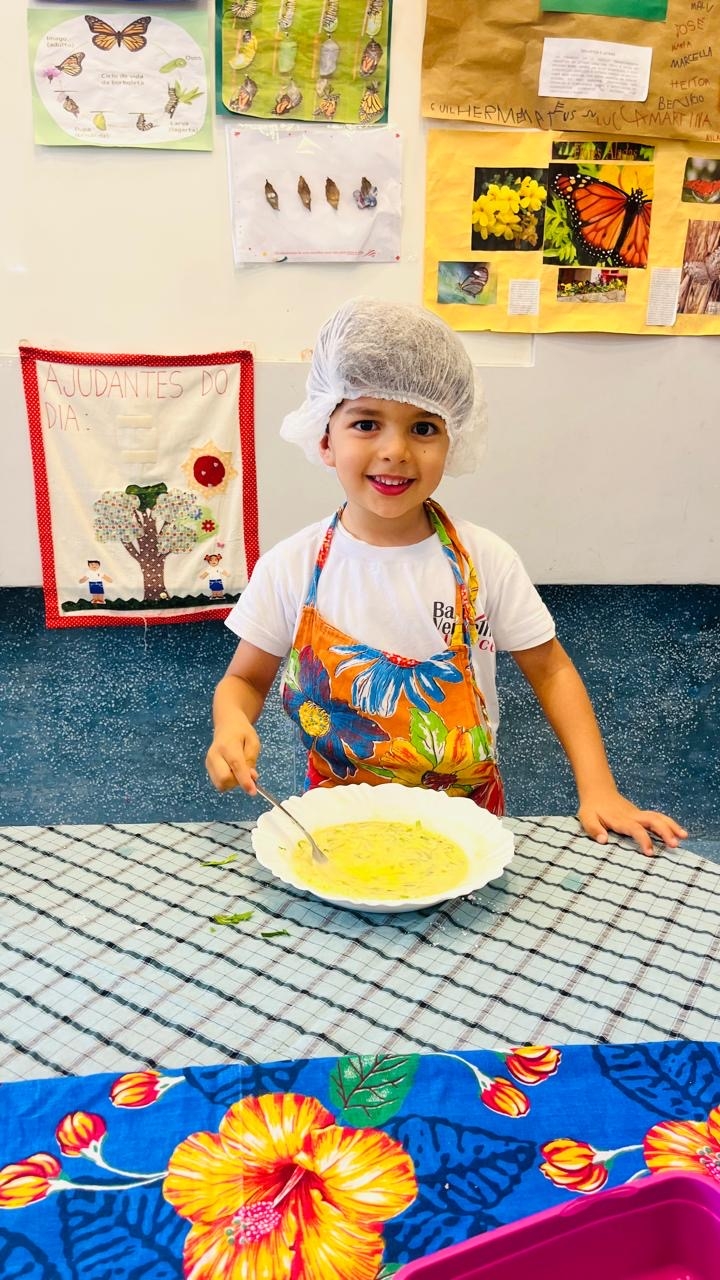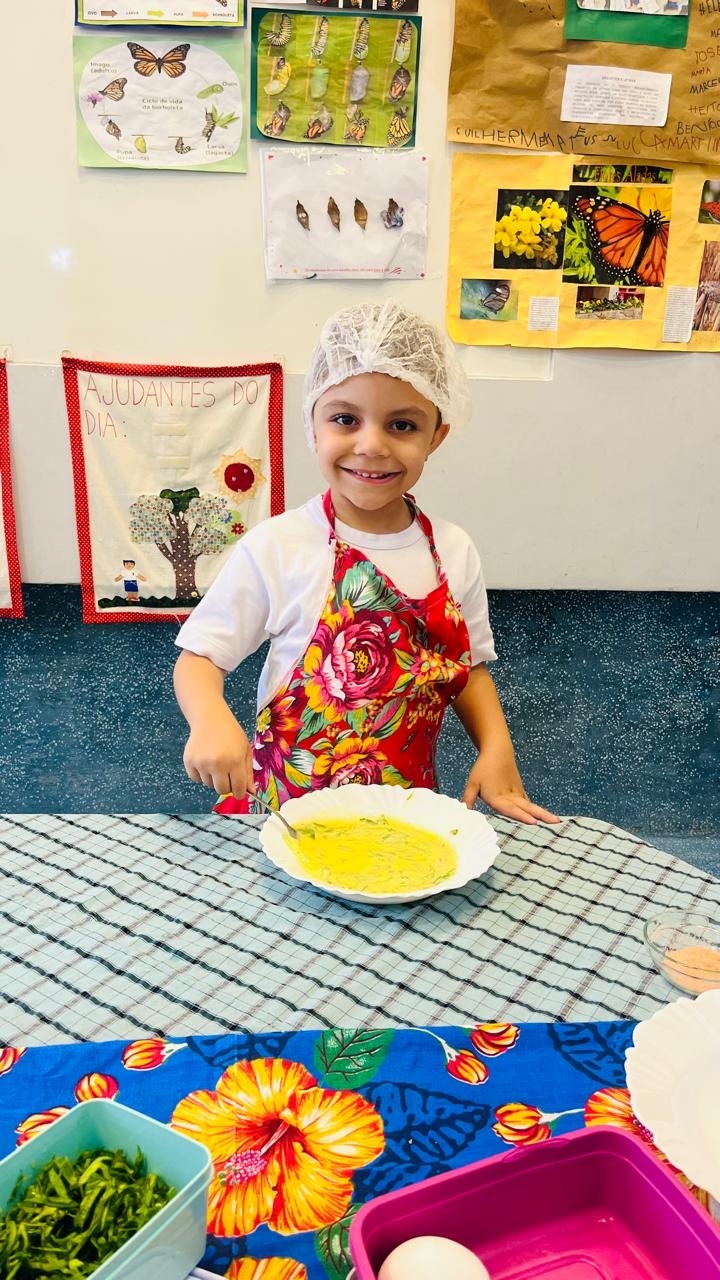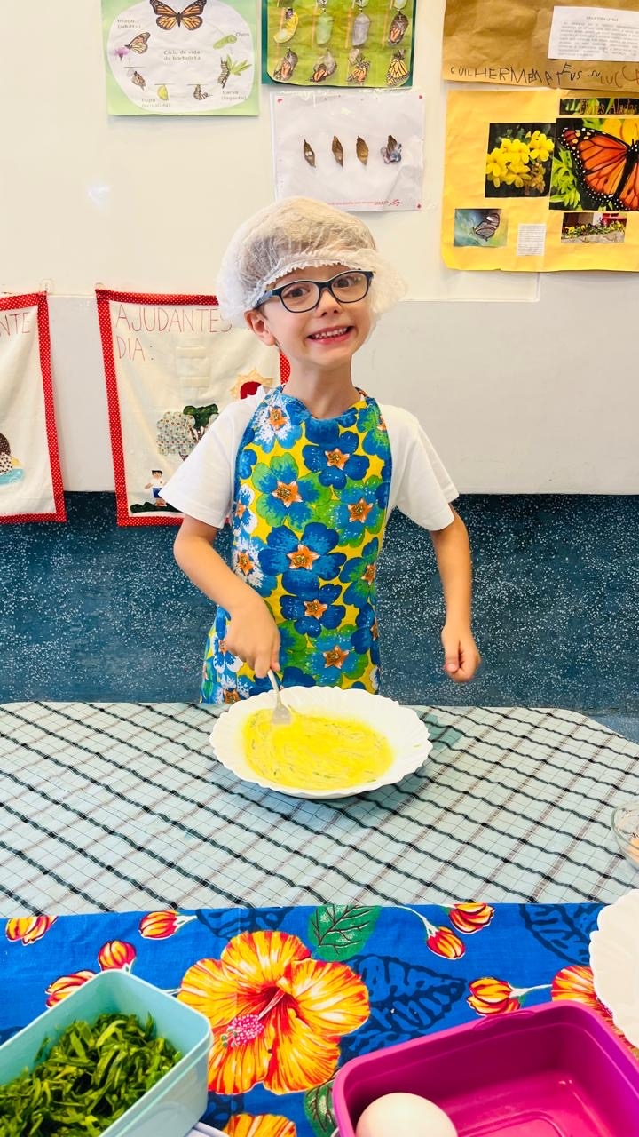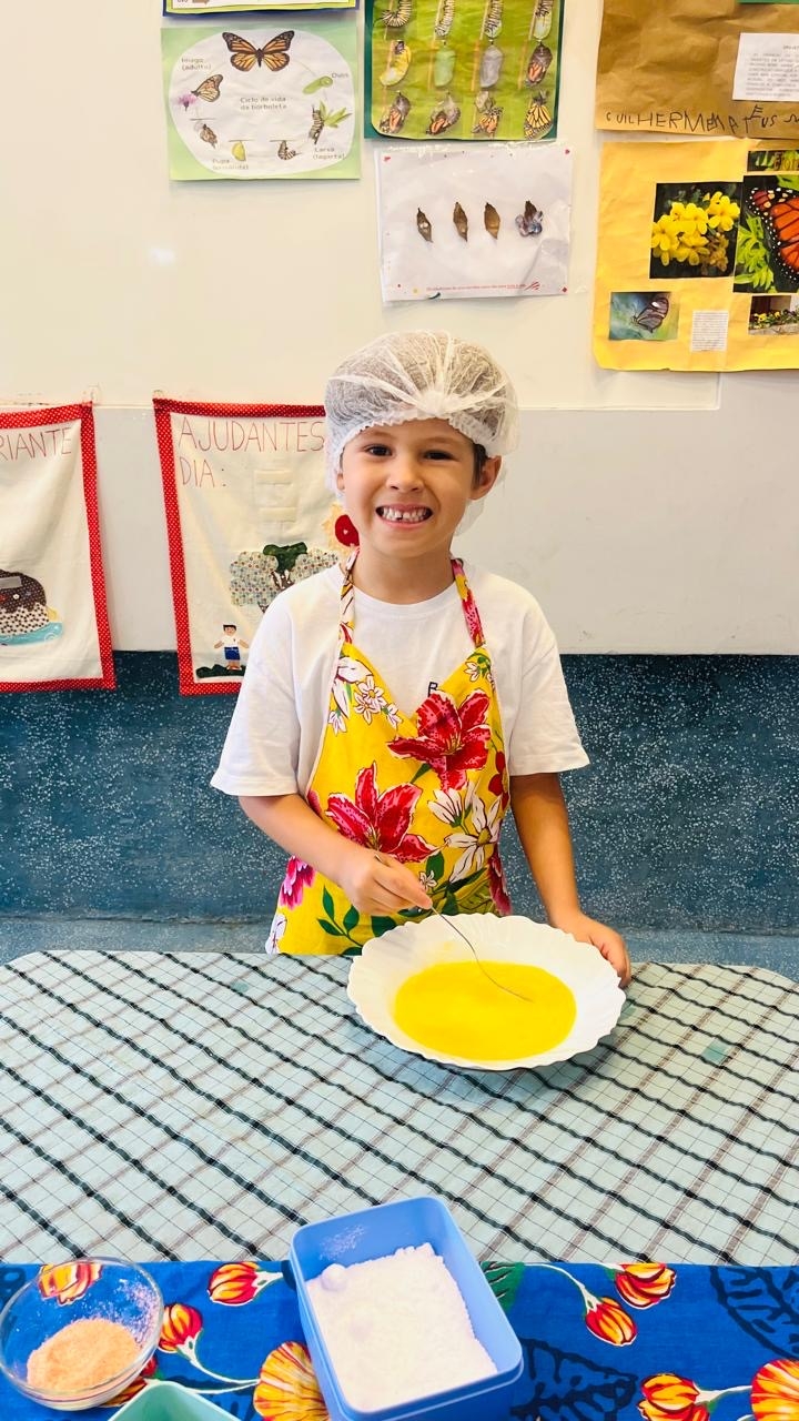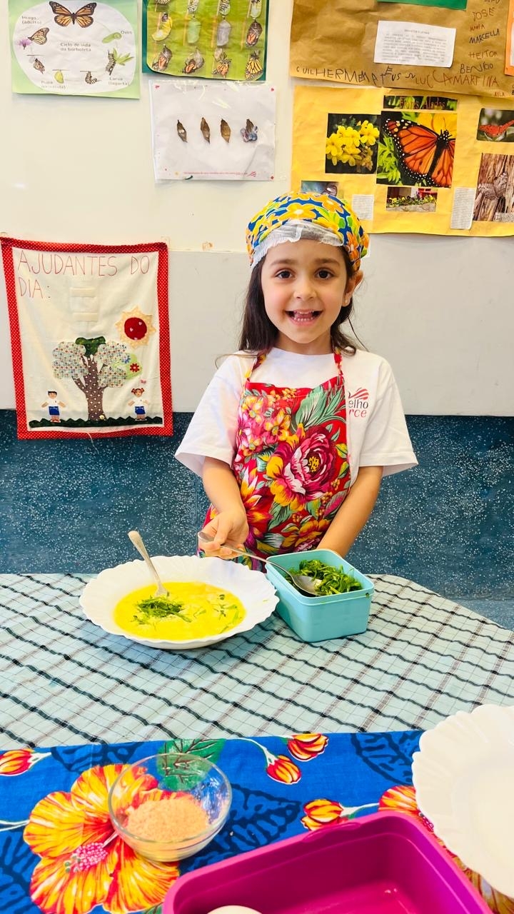 As crianças do Primeiro Período uniram literatura e culinária para explorar aspectos da cultura africana de forma sensível e significativa. A partir de uma história cuidadosamente selecionada, vivenciaram sabores, cores e narrativas que ampliam o repertório cultural, favorecem a curiosidade e fortalecem a compreensão da diversidade presente no mundo. Essa experiência integradora contribui para aprendizagens que dialogam com a imaginação, a convivência e a valorização das diferentes culturas.
