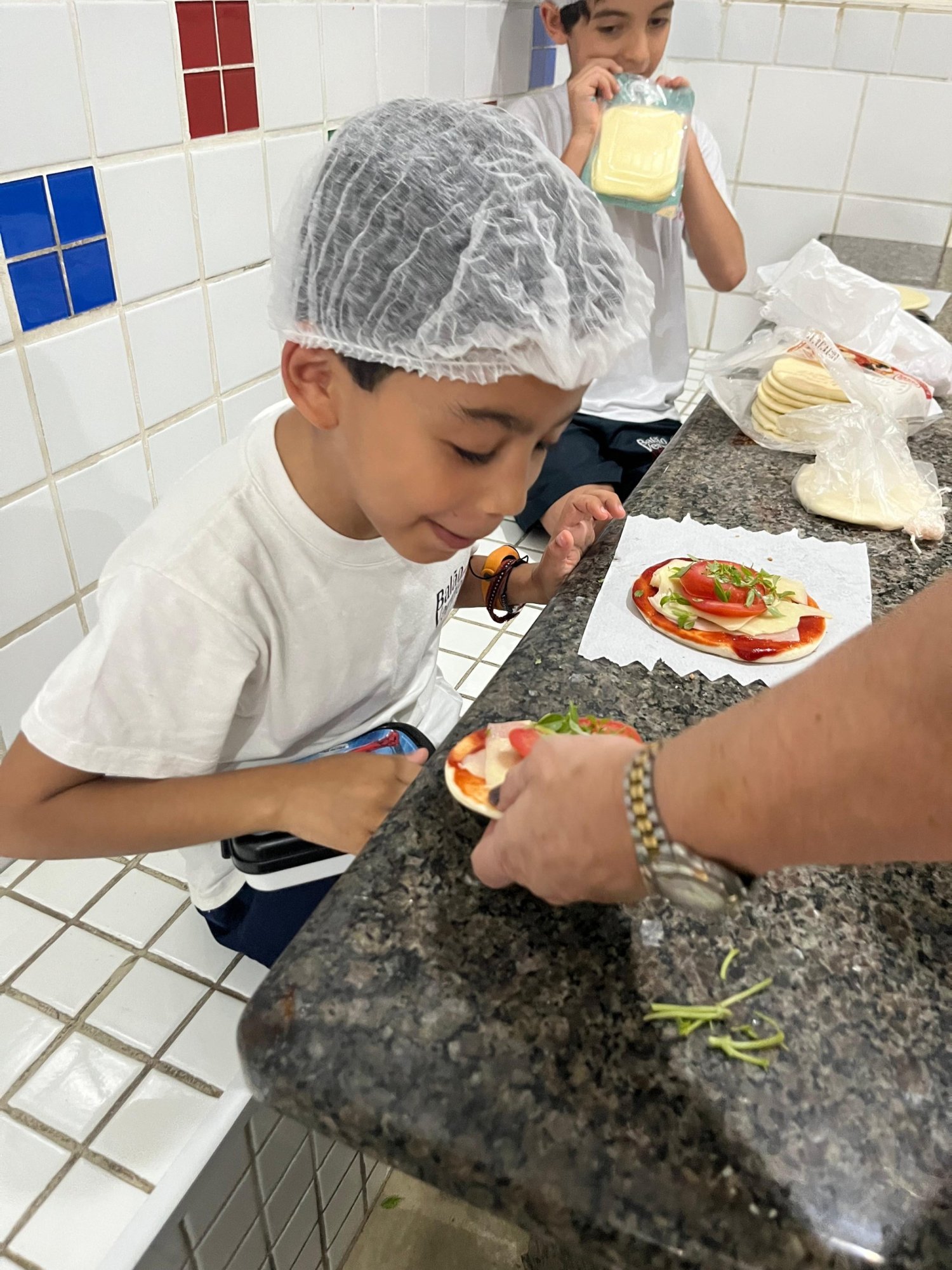 Hoje foi dia de Cooking Class no 2º ano! Como parte do estudo sobre foods, as crianças prepararam uma deliciosa pizza, vivenciando a língua inglesa de forma prática e significativa. Enquanto exploravam novos vocábulos, experimentaram sabores, colaboraram entre si e se envolveram em uma atividade que integra linguagem, cultura e prazer em aprender.