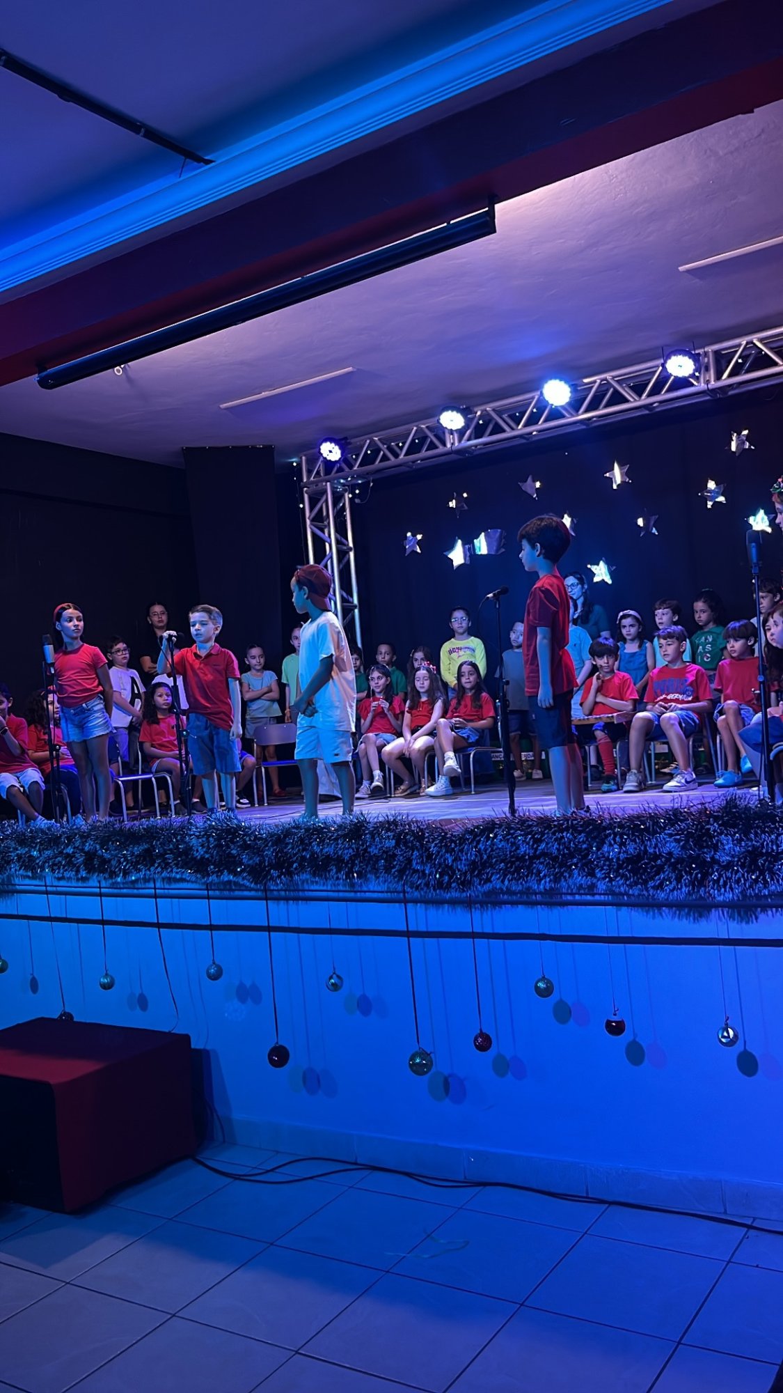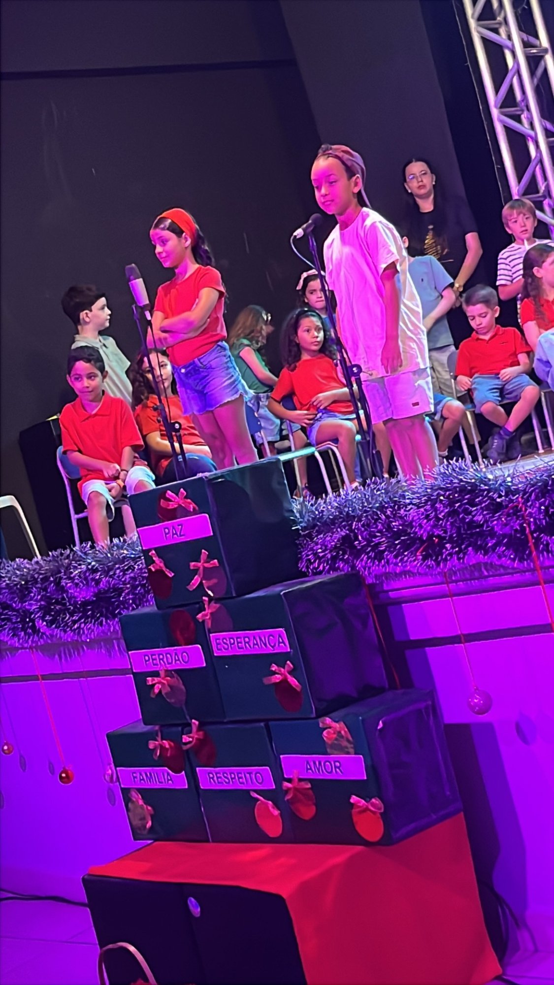 As turmas do 1º e do 2º ano do Ensino Fundamental realizaram uma apresentação com o tema “O Verdadeiro Sentido do Natal”, inspirada na história O Natal de Manuel, de Ana Maria Machado. As crianças deram vida à narrativa com entusiasmo e sensibilidade, proporcionando uma noite que tocou profundamente o coração de todos os presentes. Foi um momento especial, marcado pela partilha, pelo carinho e pela força das histórias que educam e inspiram.