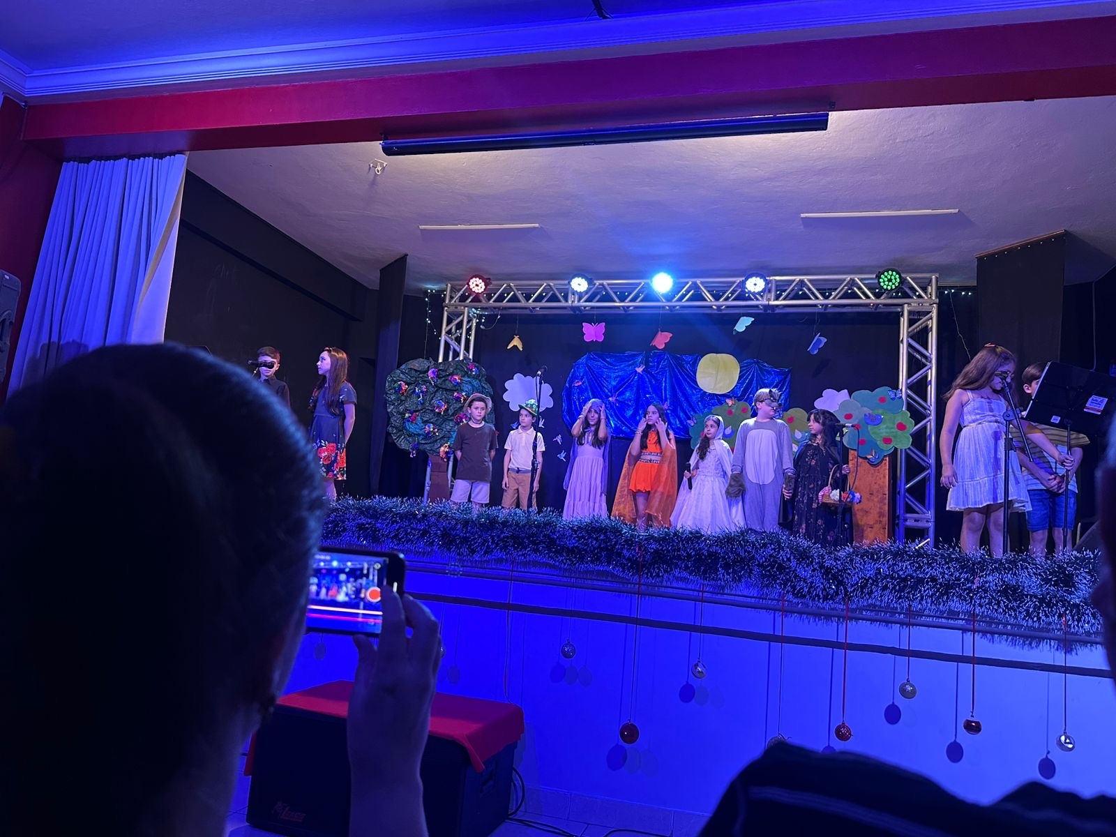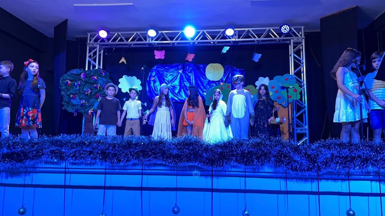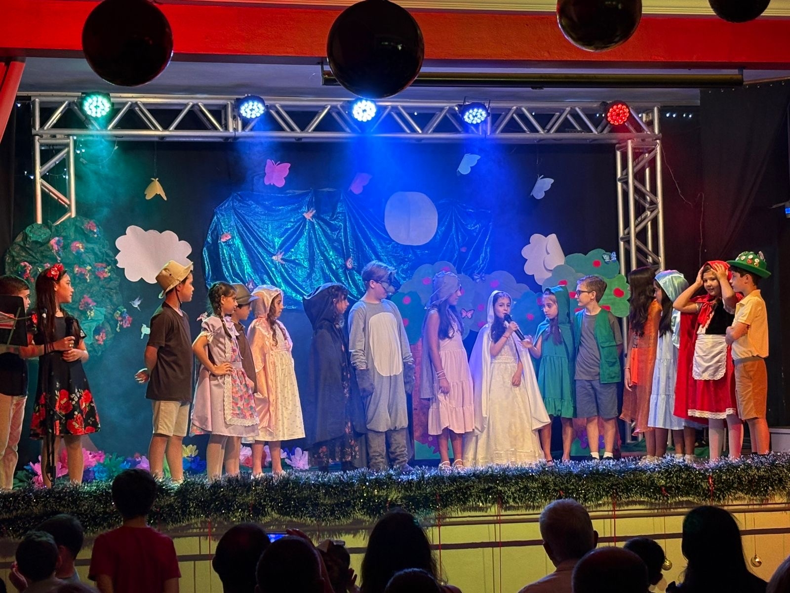 A apresentação das turmas do 3º e 4º ano do Fundamental I, com o tema Era Uma Vez, encantou todas as famílias presentes. A noite foi marcada por muita emoção, celebrando o envolvimento das crianças e a beleza da história que ganhou vida no palco.