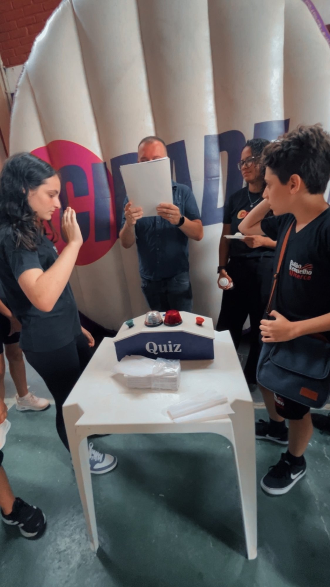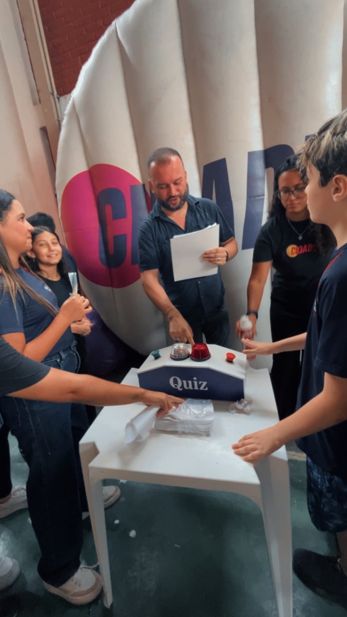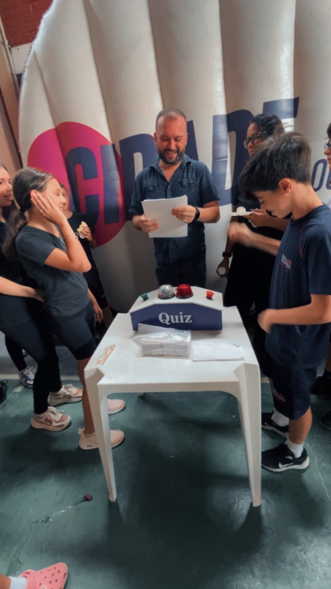 O primeiro dia de aula dos alunos do Ensino Fundamental II foi comemorado com muita alegria e diversão. A Rádio Cidade preparou um animado quiz de perguntas e respostas, garantindo momentos de interação, entusiasmo e muitas risadas, com direito a picolé e torta na cara, tornando a recepção ainda mais especial.