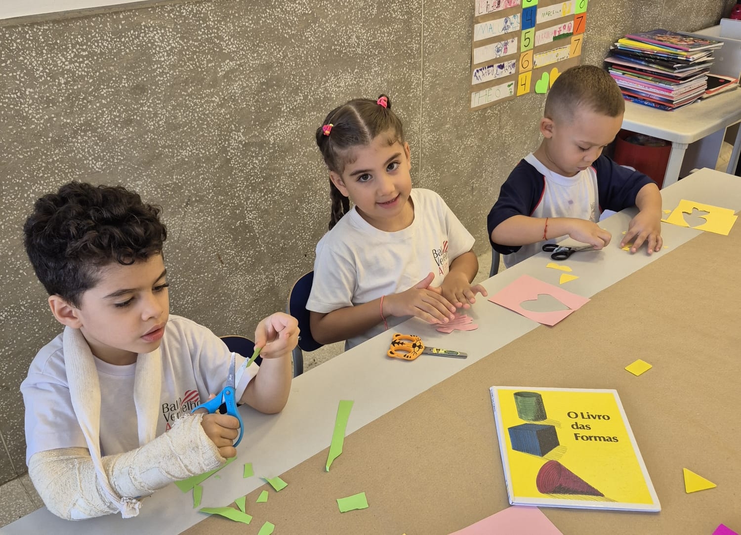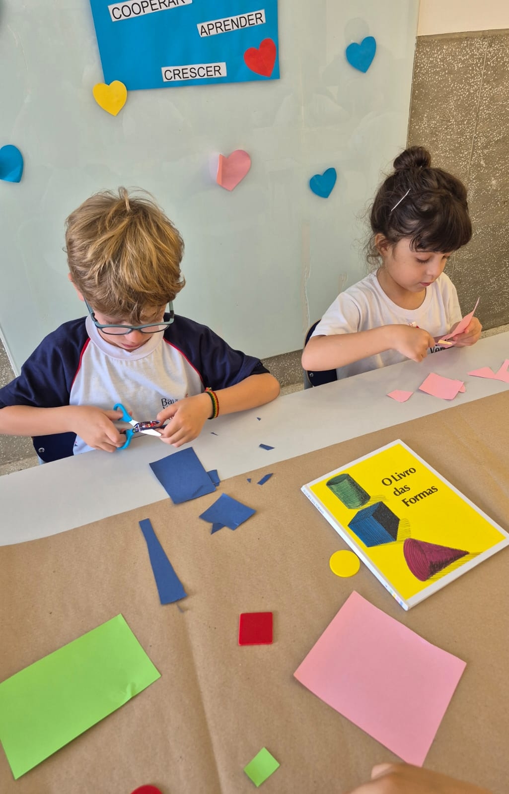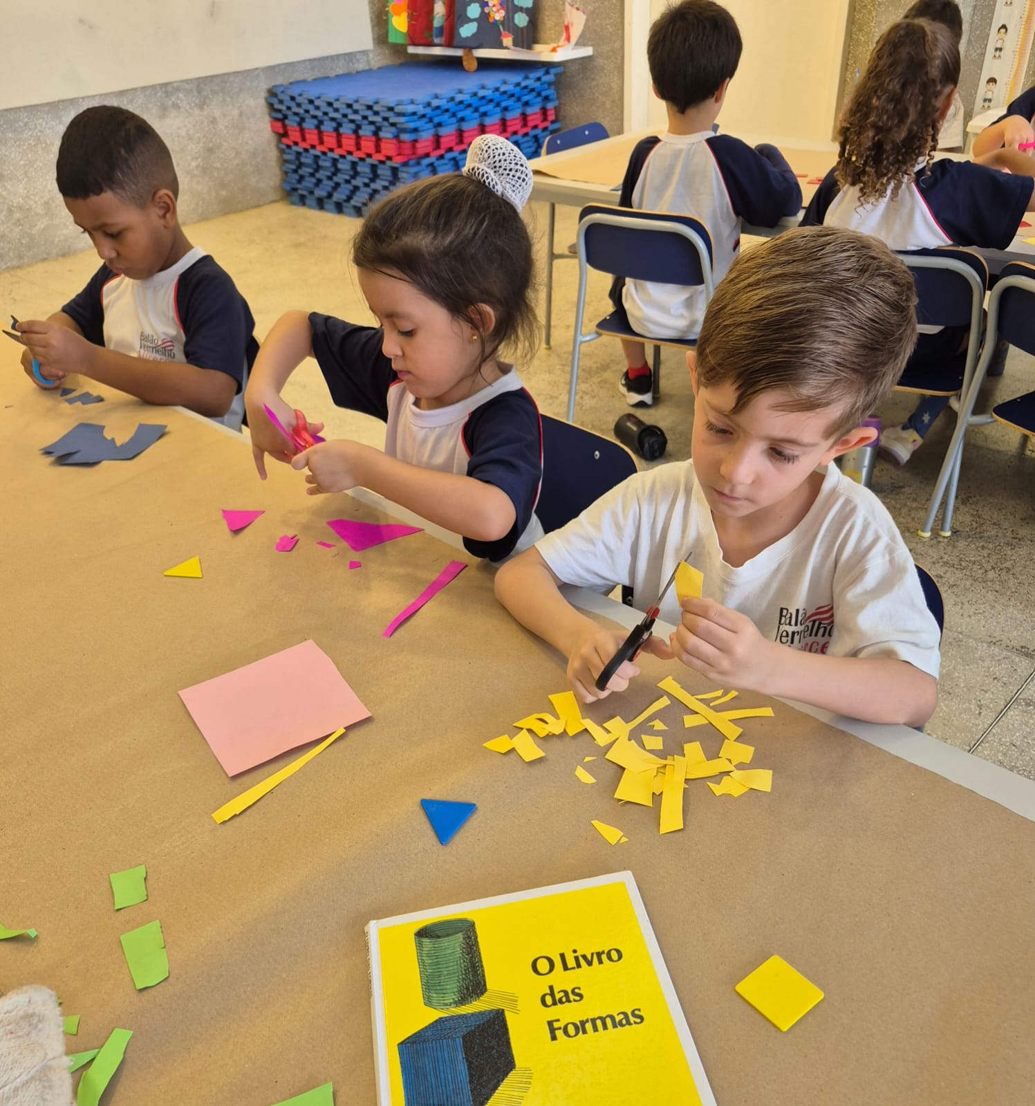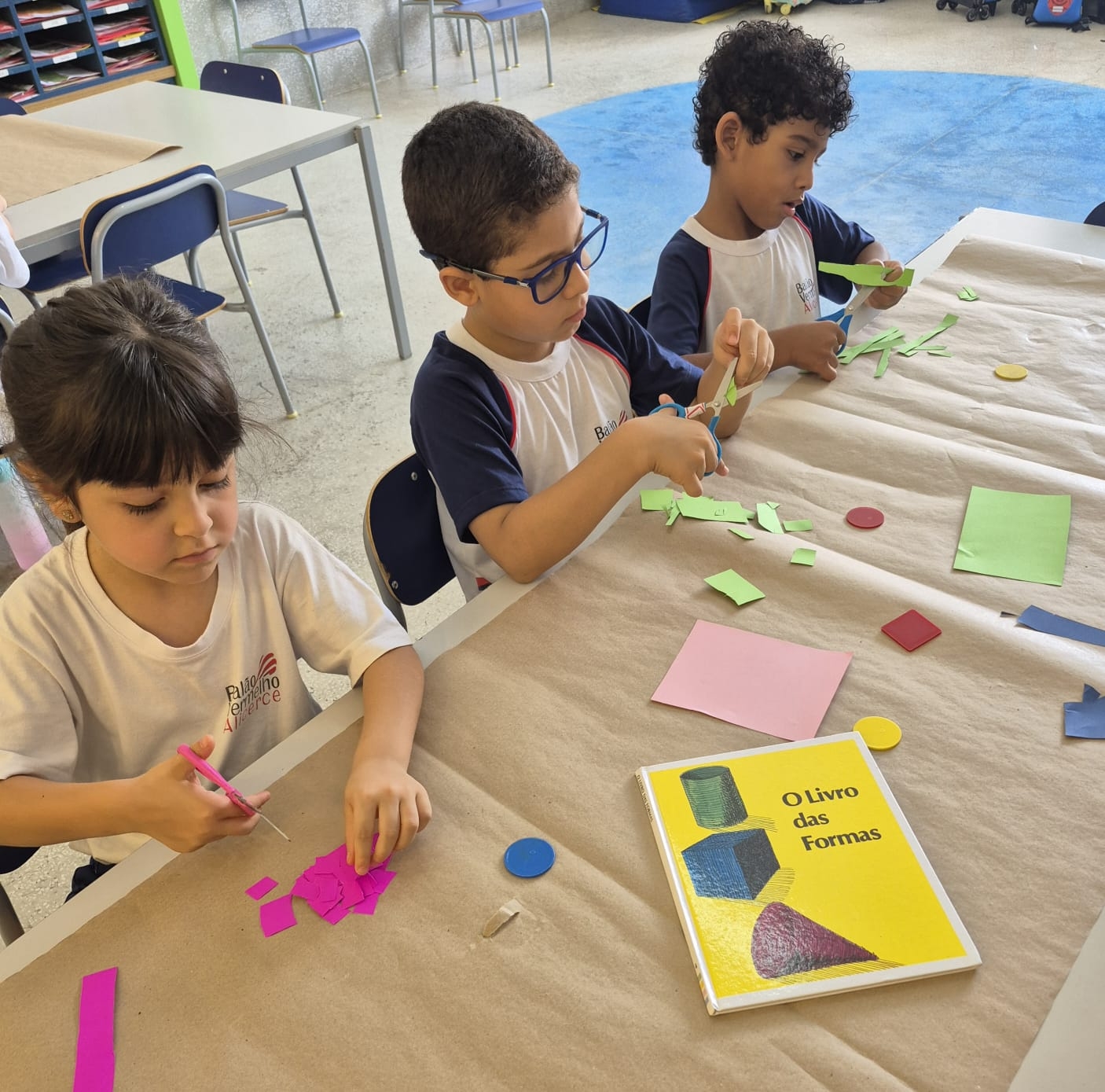 As figuras geométricas e suas muitas possibilidades de criação foram exploradas com as crianças do 2º período de forma lúdica e significativa. Por meio de diferentes propostas, os alunos puderam reconhecer formas, combinar elementos e criar composições, desenvolvendo a percepção visual, a criatividade e o raciocínio lógico de maneira divertida.
